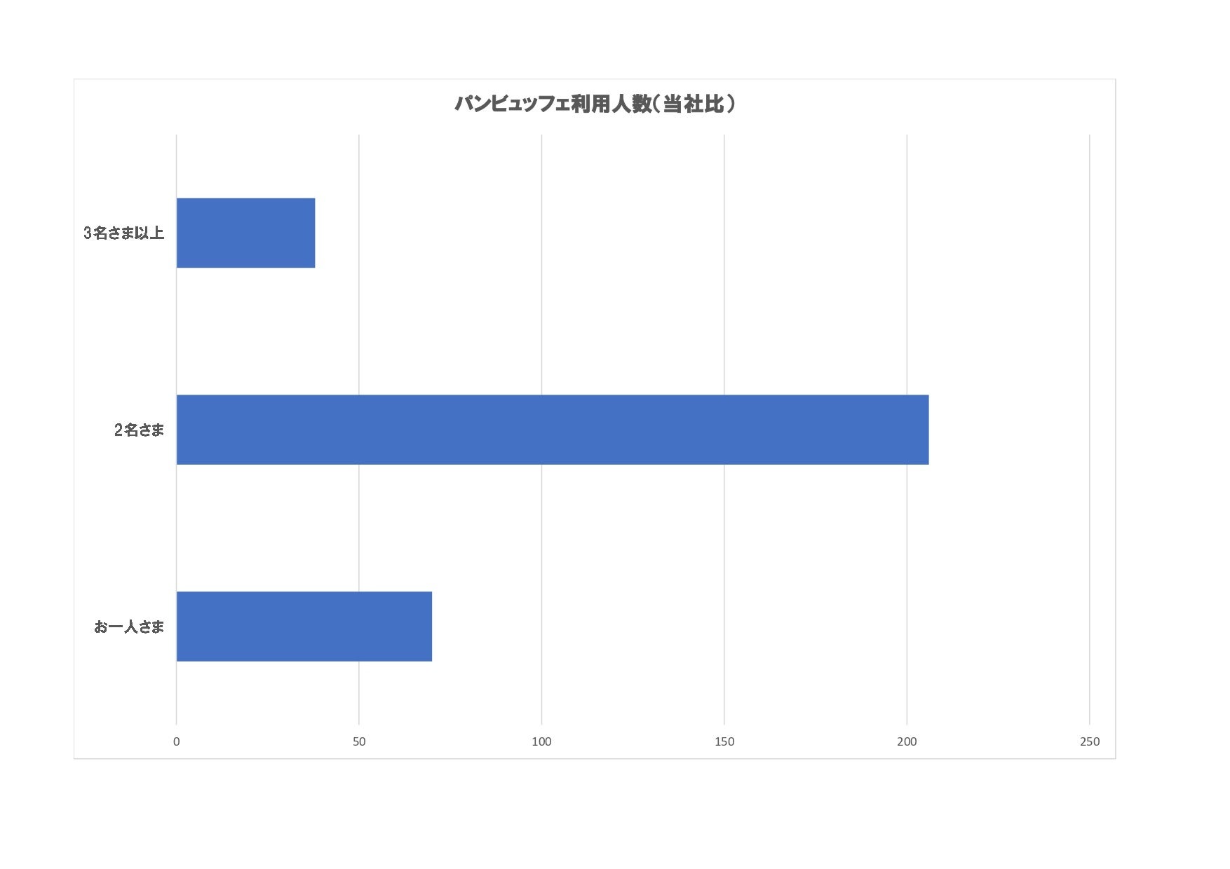 「お一人さま」は日本人のライフスタイルの1つとして定着してきており、現在では「充実した時間を過ごせる」「丁寧な暮らしを追求する」というプラスのイメージに変わってきています。過去開催した「パンビュッフェ」の利用者数をみても「お一人さま」は全体の約3割に上ります。