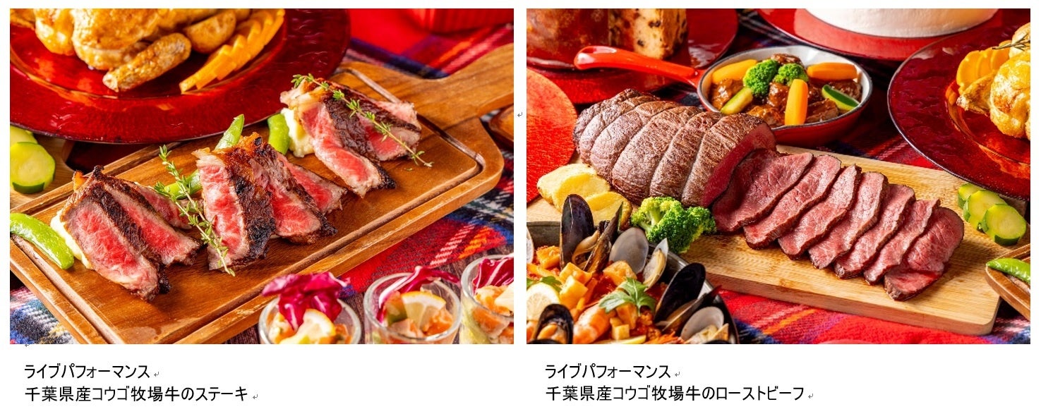 ライブパフォーマンス:千葉県産コウゴ牧場牛のステーキ&ローストビーフ