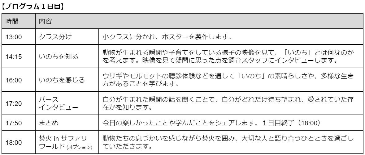 【オプション】特別プログラム「焚火 in サファリワールド」 9,500円/名(軽食付)