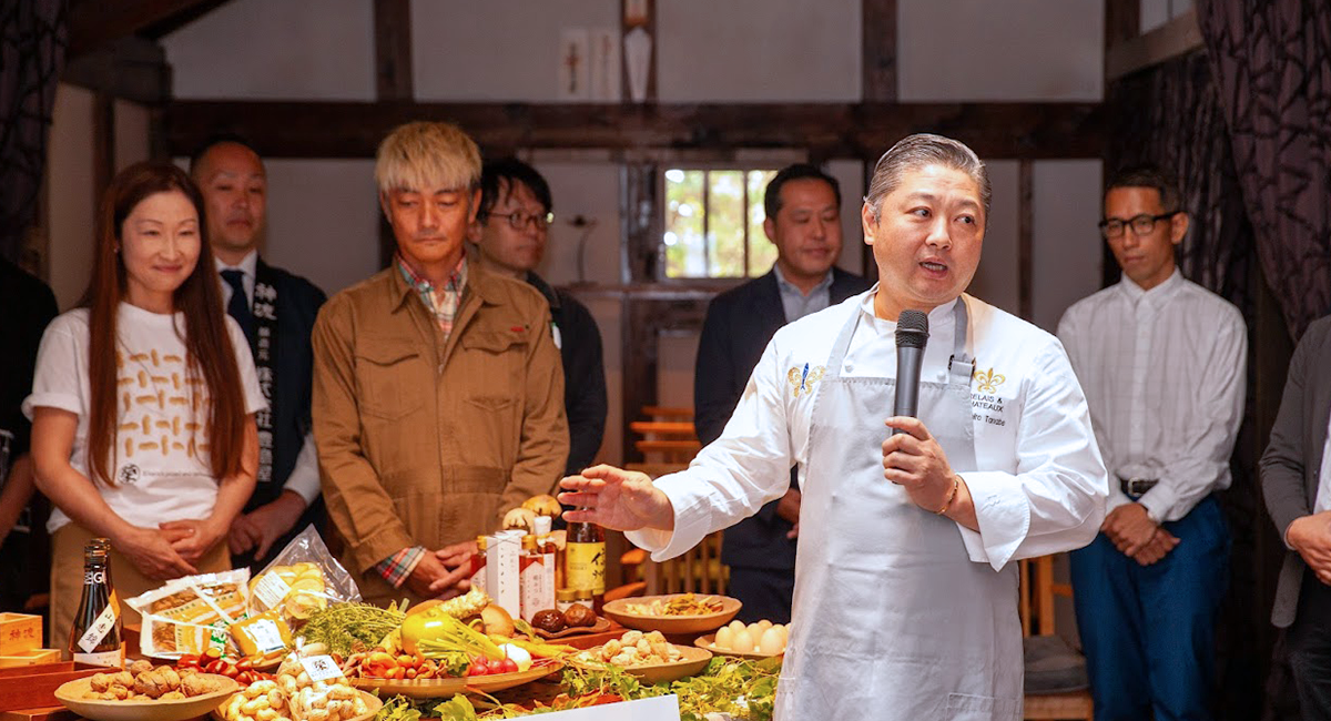 この地域には本当にいい生産者さんが多く、古くから質の高い食材をつくってくれている生産者さんもいます。私が特に強調したいのは、次世代の若い生産者とシェフたちです。ルレ・エ・シャトーのシェフたちも同様に、彼らは鳥で例えると、まるで卵を抱えるように新しい可能性を秘めています。それをいつか世の中に羽ばたかせ、次の世代に残していきたいと、私たちや多くのシェフたちは思っています。私たちの会社も、次の世代に建物や文化、さらには地域の食を継承させるという目的で活動しています。今回のイベントでも、素晴らしい食材が提供されていますが、若手の生産者さんが作ってくれている食材もたくさんあります。私たち料理人が次の世代に何を託すのかというと、食材がなければ、私たち料理人は何も作れません。そのためにも、これからも若手の生産者をサポートしながら、品質いい食材を使った美味しい料理を地域の人々に提供していきたいと考えています。