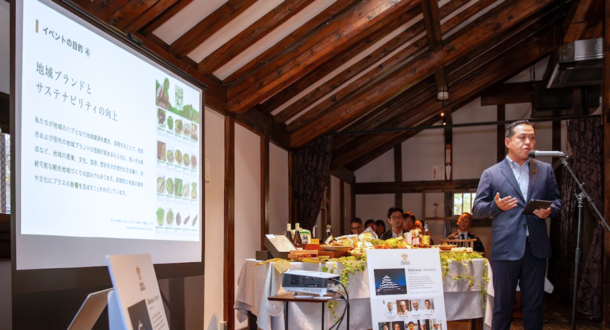 私たちの会社はウェルビーイングな地域づくりをめざしています。そのためには、地域と絡み合って、地元のいいモノやコト、歴史文化、自然環境を保っていくことが不可欠です。今回、松本の誇りであり市民が大切に守ってきた国宝松本城を舞台として使わせていただく私たちの目的は、信州の豊かな食材や発酵文化、高品質な日本酒とワイン、そして素晴らしい工芸品などを、その生産者の方々とともに一緒に価値あるものとして世界に発信していくことです。また収益の一部の寄付することで、松本城の文化財としての価値を保存・維持していくことも目的の一つです。観光のニーズが量から質へとシフトしている今、地域の貴重な資源を高付加価値に変えていくことが重要です。このイベントでもビジョンと想いを共有するルレ・エ・シャトーの同志とともに、松本城をはじめ、この地域の多面的な魅力をゲストに感じていただき、地域ブランドの価値を高めることで、松本城の保存や地域産業の担い手の確保につなげ、次の世代にこの素晴らしい地域資源を引き継ぎ、サステナブルな地域づくりに貢献していければと願っています。また私たちが2003年から始めた地域のブランド価値を高め、サステナビリティを追求する活動が今、20年目という新たな節目を迎え、私たちは、この松本城プレミアムディナーイベントを機に、より一層、地域と企業が共に繁栄するサステナブルな未来をめざしていきます。