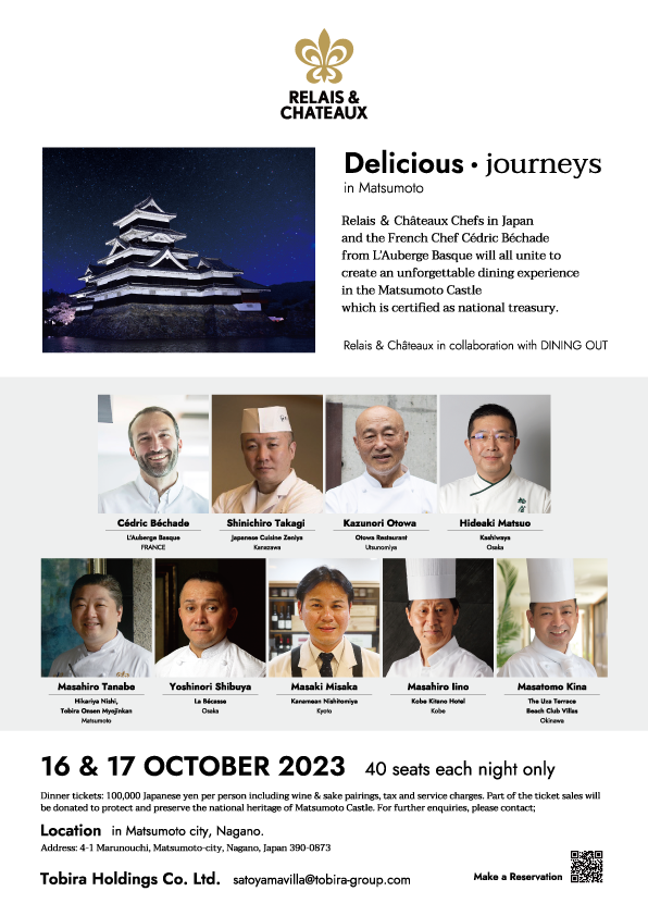 参加料金:10万円/1名(コース料理、ワイン日本酒などのペアリング代、消費税、サービス料、松本城入場券 )