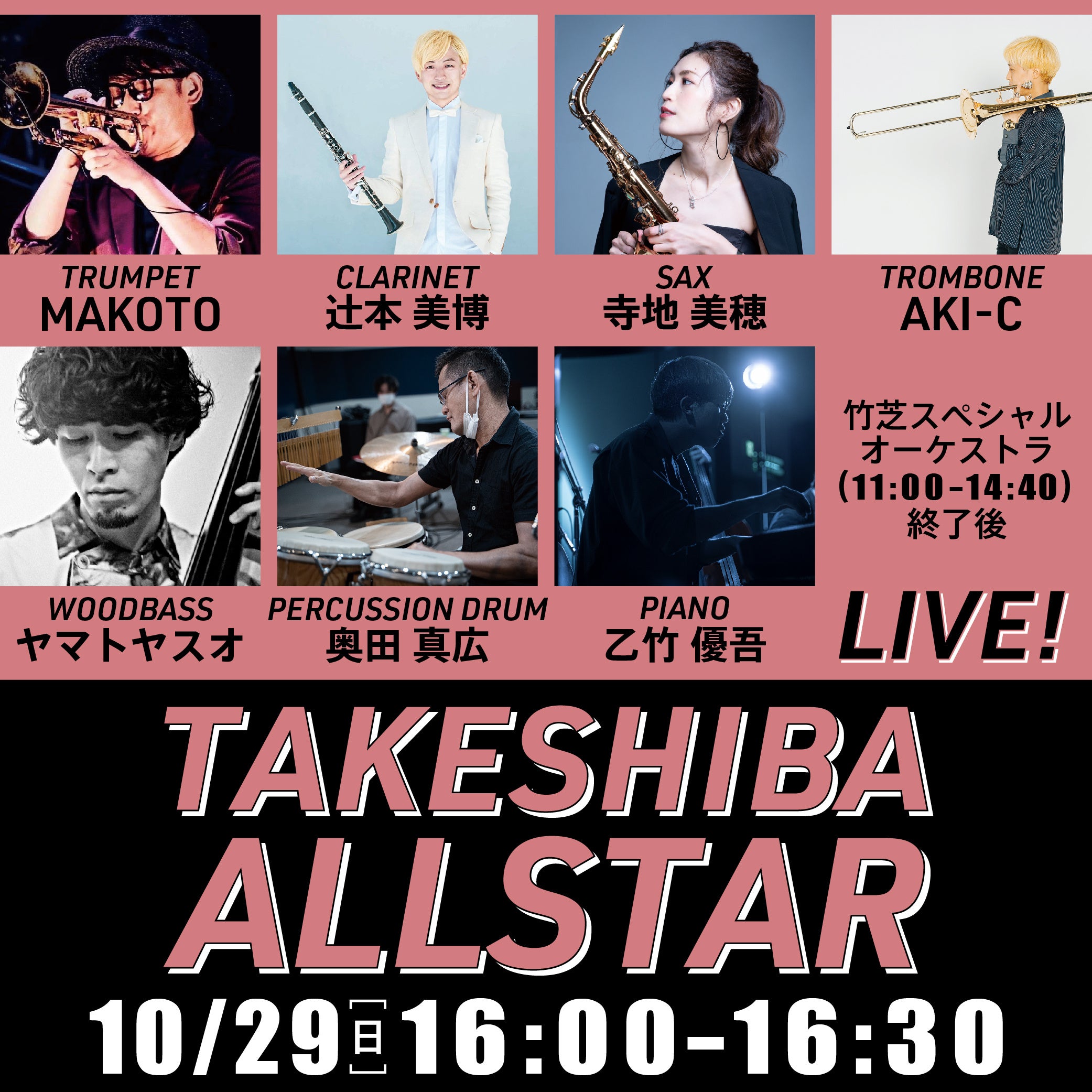 『TAKESHIBA SPECIAL ORCHESTRA』にゲスト出演したミュージシャンによる、 この日限りのスペシャルバンド「TAKESHIBA ALL STAR」が生演奏を披露します。
