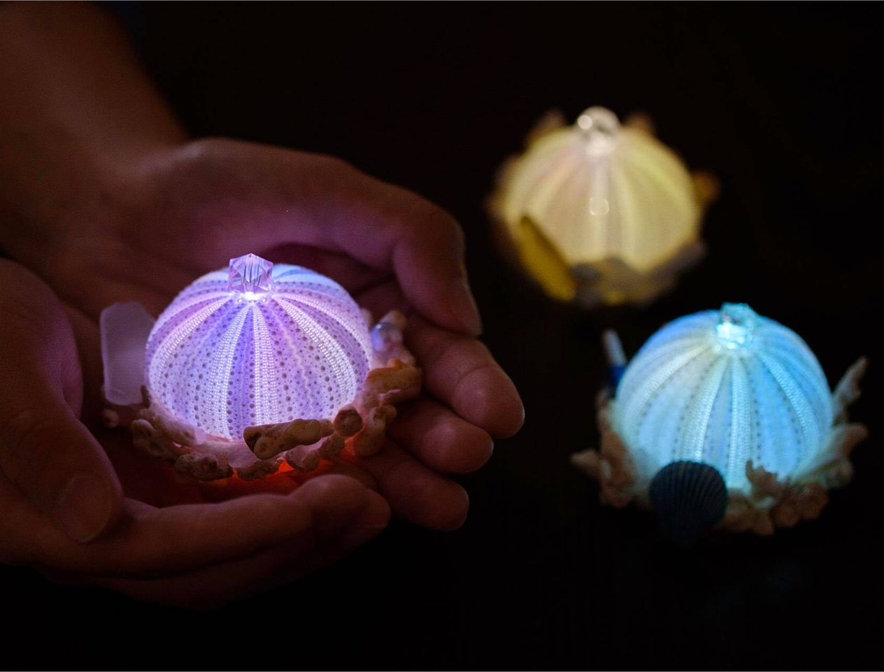 ウォーターズ竹芝で大人気の『ウニランプ』を作って夜の干潟に浮かべます。
