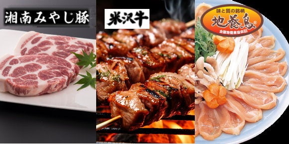 湘南を代表する国産ブランド豚「みやじ豚」、ヘルシーで濃厚なうまみがあふれるブランド鶏「地養鳥」、全国屈指のブランド牛「米沢牛」を使った牛串をご用意いたします。