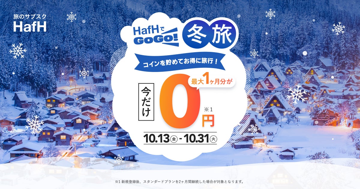 本日10月13日(金)より、下記の通り「HafHでGO!GO!冬旅キャンペーン」を開催します。