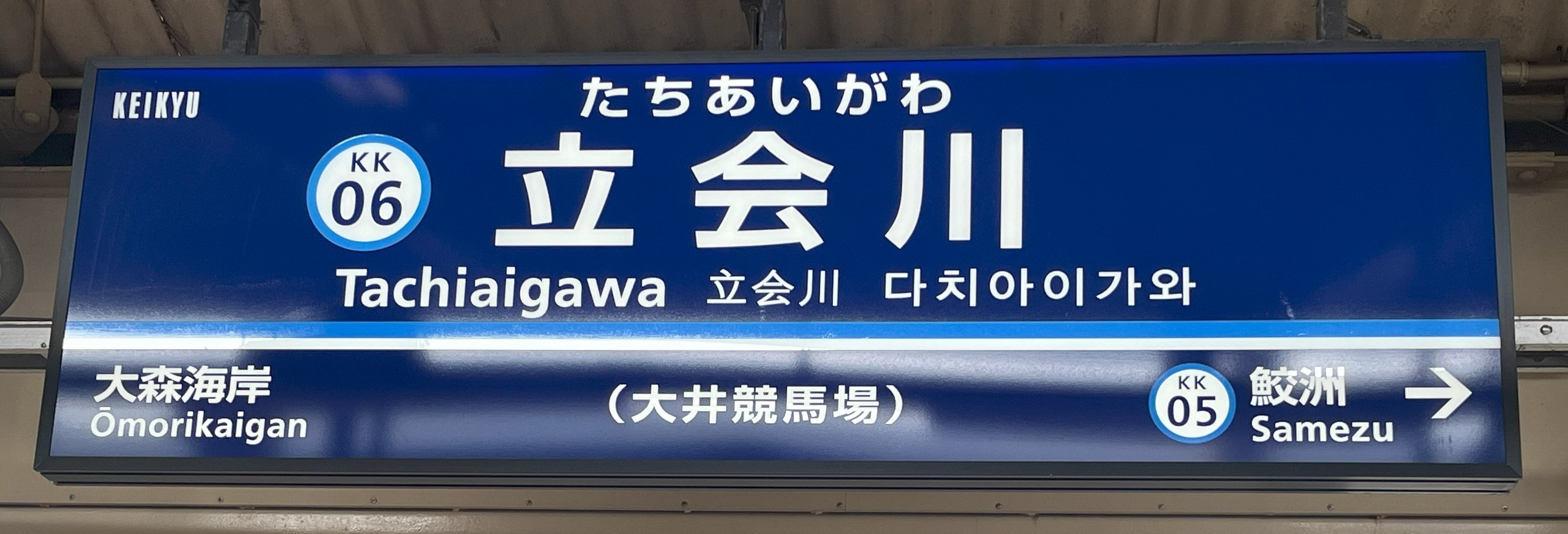 TCKの最寄り駅である立会川駅に副駅名称として「大井競馬場(読み:おおいけいばじょう)」を令和4年4月2日より掲出しております。副駅名称「大井競馬場」は、立会川駅ホーム内駅名サインの8か所に表示され、京急線をご利用のお客様に立会川駅が東京シティ競馬の最寄り駅であることをご案内するとともに、東京シティ競馬が地域の方にとって身近な存在であることをPRします。立会川駅をご利用の際は、ぜひ副駅名称「大井競馬場」にもご注目ください。