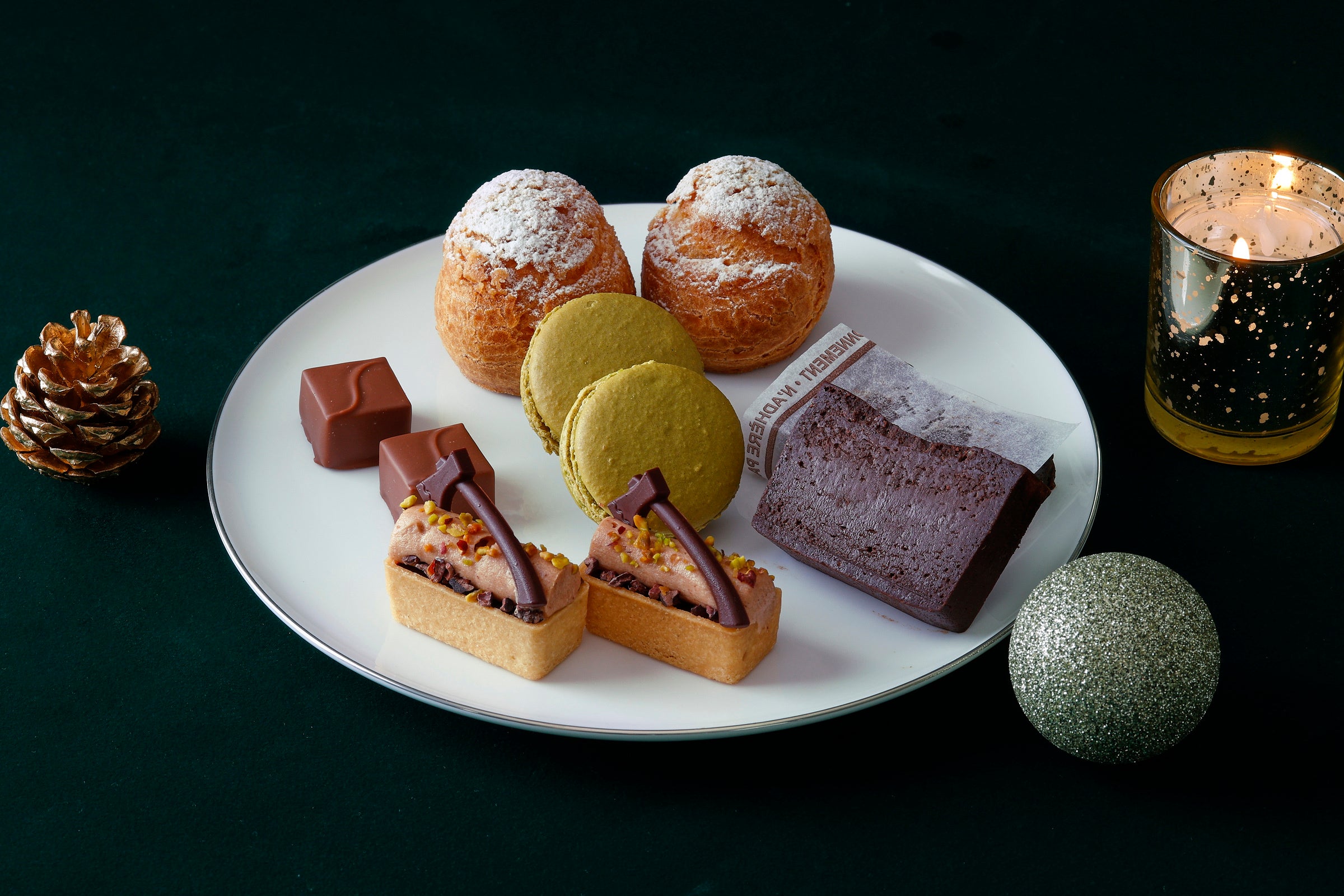 平日は、『デザート アンサンブル』のクリスマスバージョンをご用意いたします。エグゼクティブペストリーシェフ鈴木一夫が、巧緻を凝らしてつくる10個ものミニデザートがプレートの上でハーモニーを奏でます。クリスマスを存分に感じる可愛らしいデザートをTWG Teaの香り豊かなティーとともにご堪能いただきます。