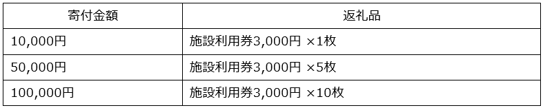 返   礼   品   例 :ゴルフプレー利用券、ホテル宿泊割引券、アクティビティ利用券、