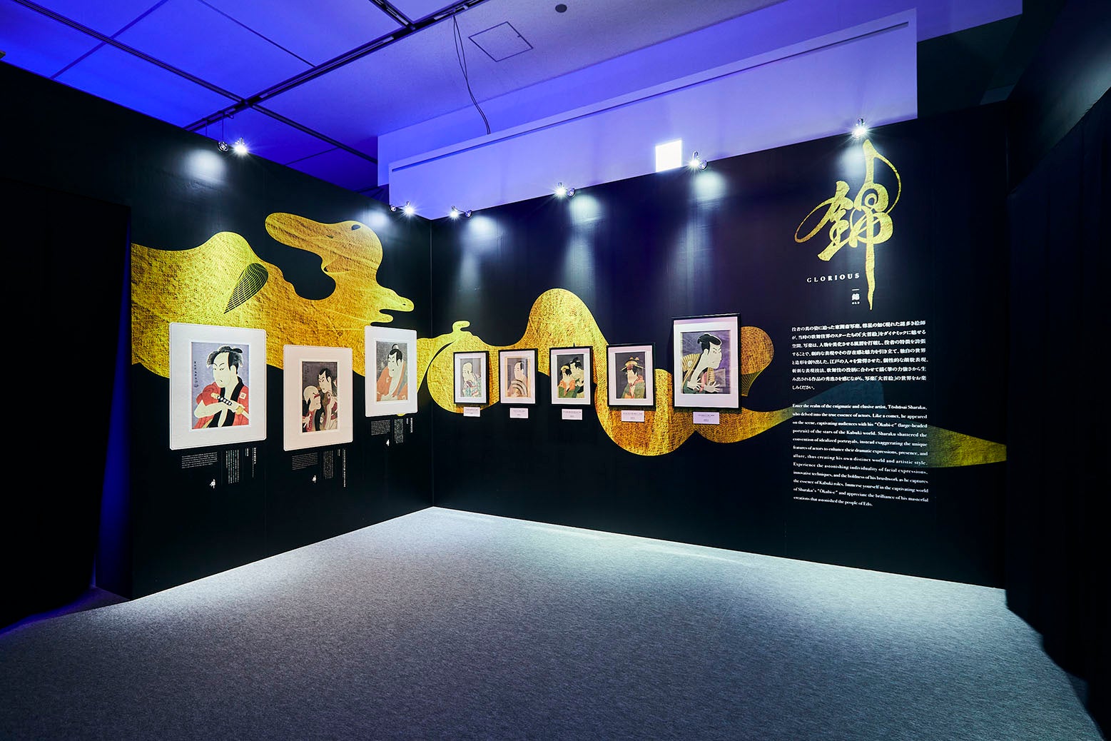 浮世絵展第八幕のテーマは「豪」。歌川国芳の水滸伝シリーズをはじめとする、武者絵や相撲を題材にした豪快な中にも繊細さがあり、荒々しいエネルギーを放出する浮世絵をダイナミックに魅せる空間。