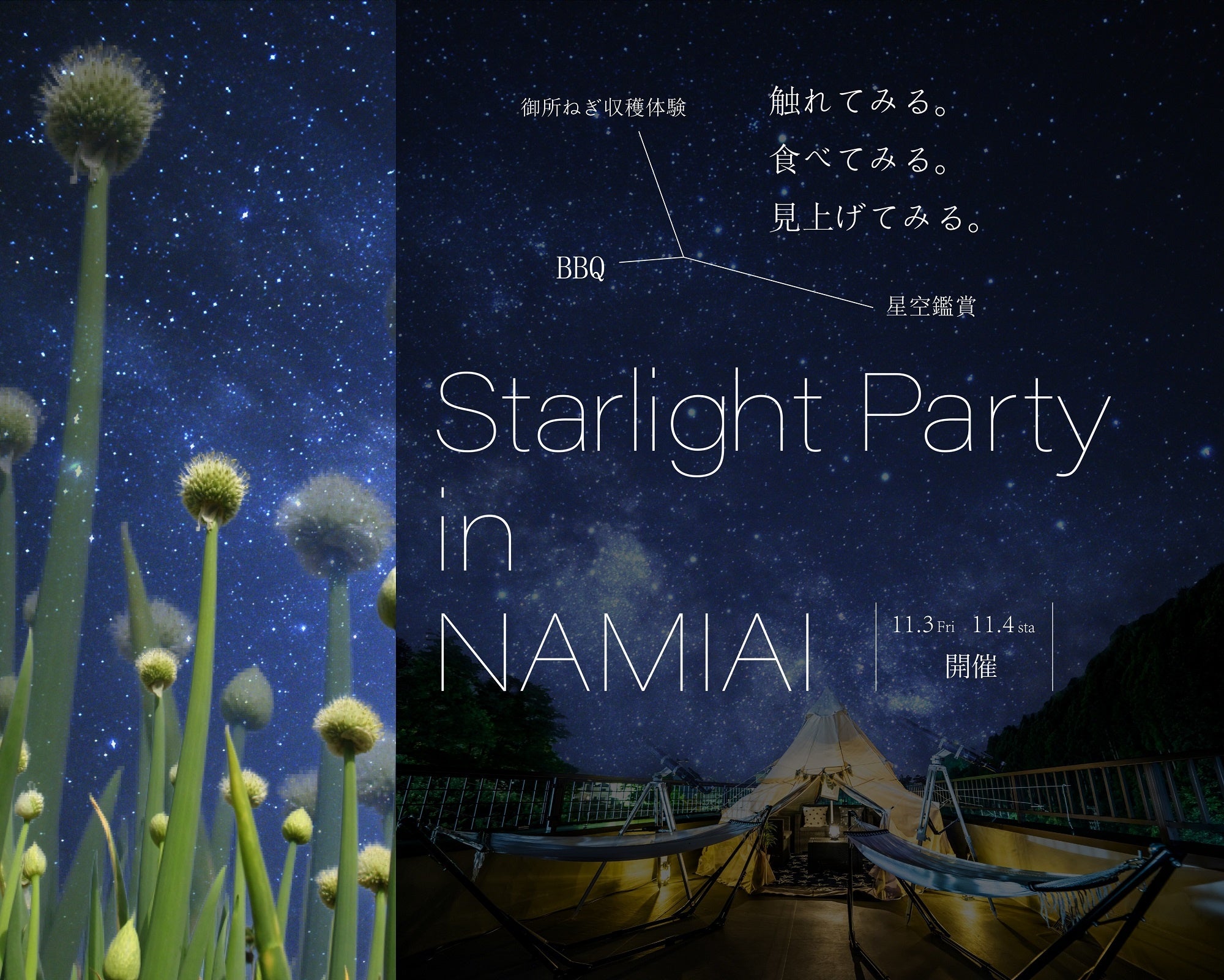 御所ねぎ収穫体験・収穫した御所ねぎと信州のブランド肉のBBQ(バーベキュー)・星空観賞・温泉入浴