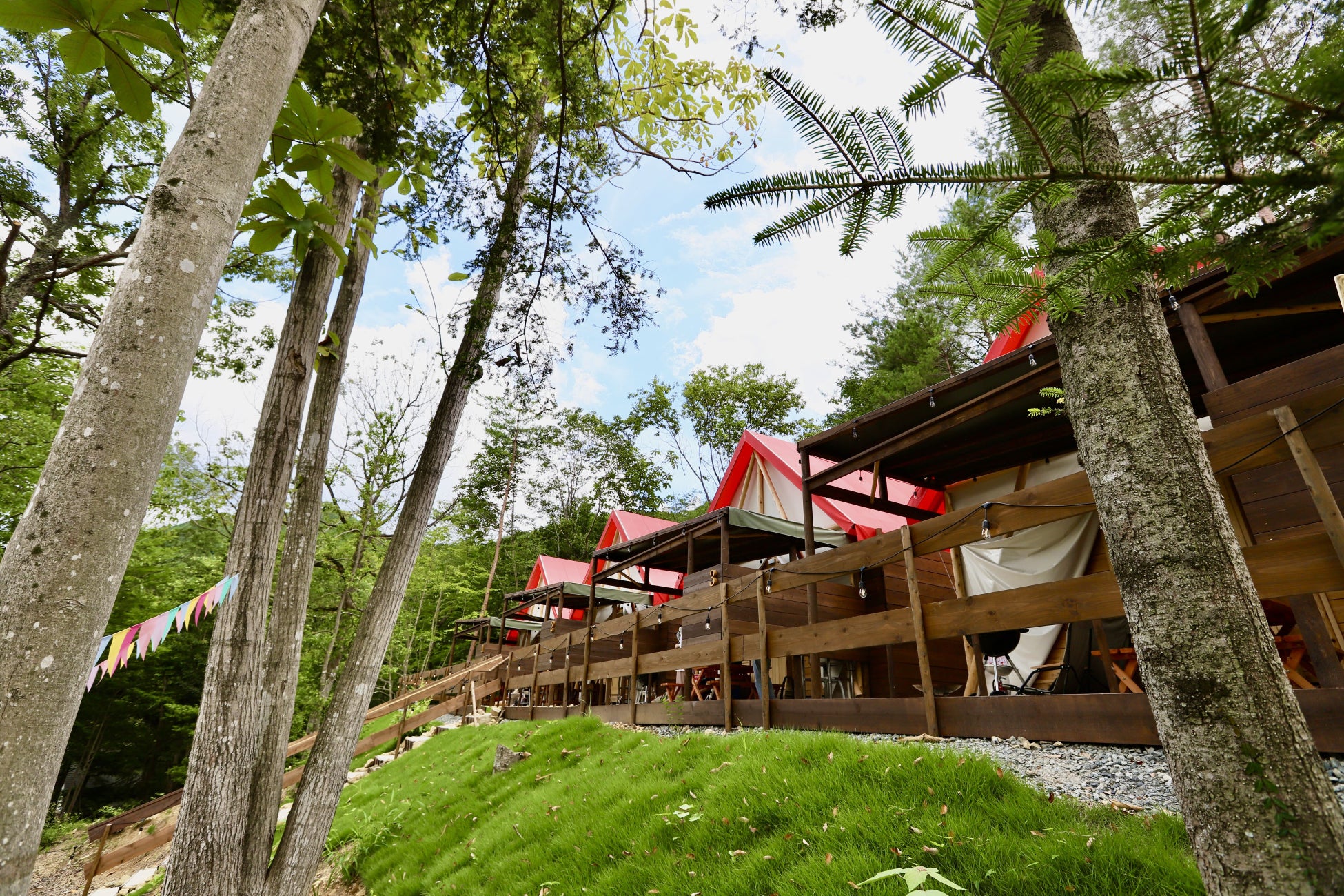 ウッドデザインパーク与位は大阪・神戸などの都市圏から2時間でアクセス抜群のグランピング施設です。