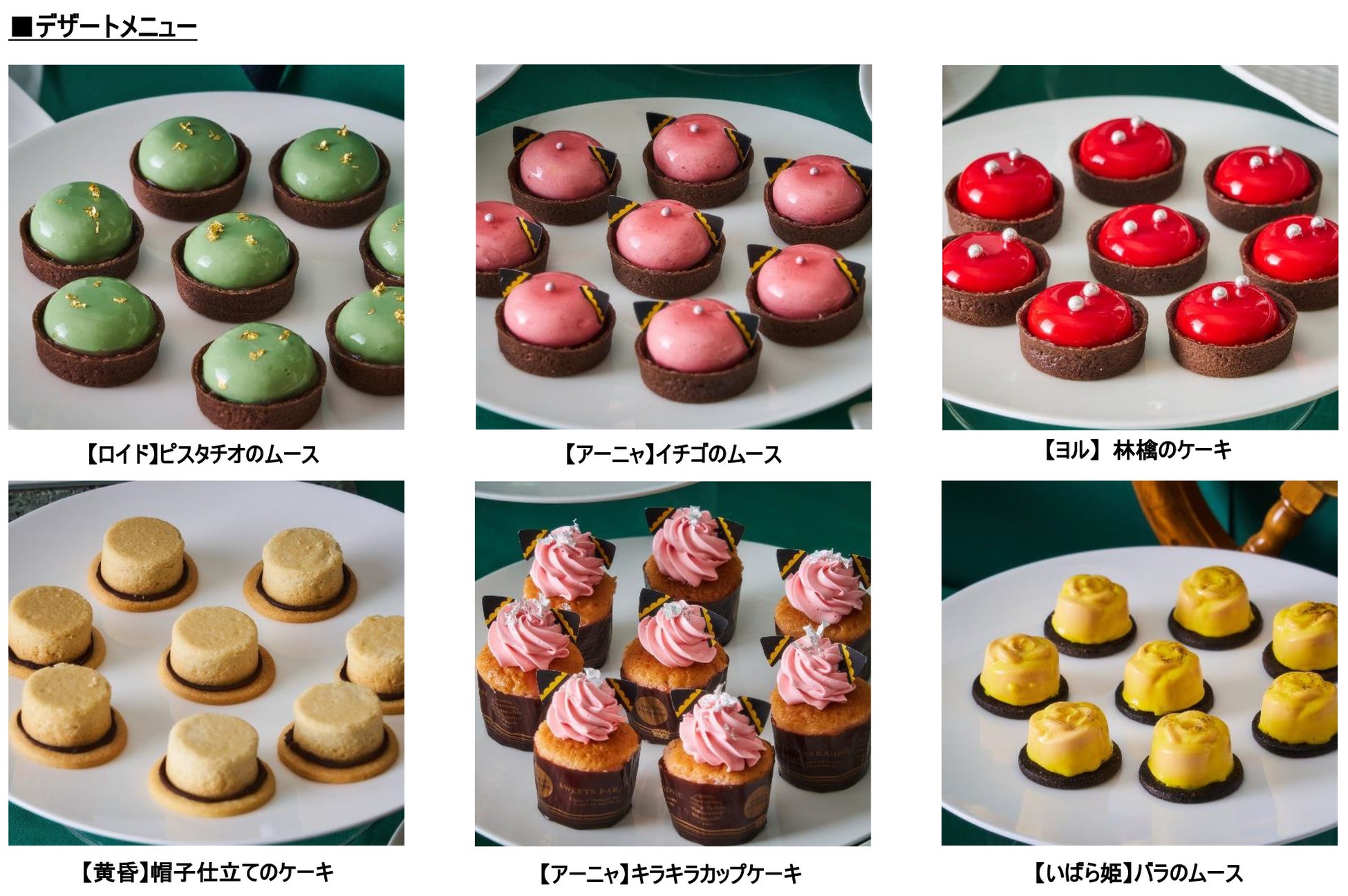 TVアニメ『SPY×FAMILY』のフォージャー家「ロイド」「アーニャ」「ヨル」「ボンド」をイメージしたビュッフェをお楽しみいただけます。また、キャラクターをイメージしたスペシャルモクテルも追加でご注文が可能です。さらに今回のビュッフェに合わせ、会場にてオリジナルグッズも販売予定です。