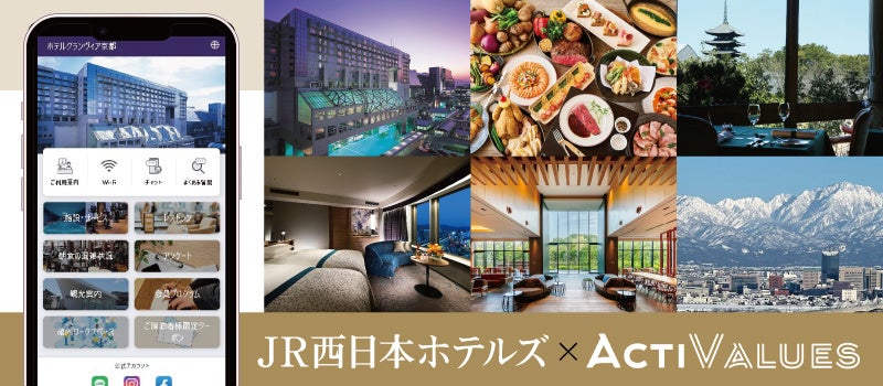 株式会社ジェイアール西日本ホテル開発(京都府京都市下京区、代表取締役社長 伊勢 正文)は、展開するJR西日本ホテルズの全11ホテルにて、観光分野のDXを推進する株式会社アクティバリューズ(東京都渋谷区、代表取締役社長 陳 適)が提供するAIを活用した多言語対応の旅ナカ専用ウェブアプリ「VERY(ベリー)」を、2023年10月16日(月)より順次導入いたします。