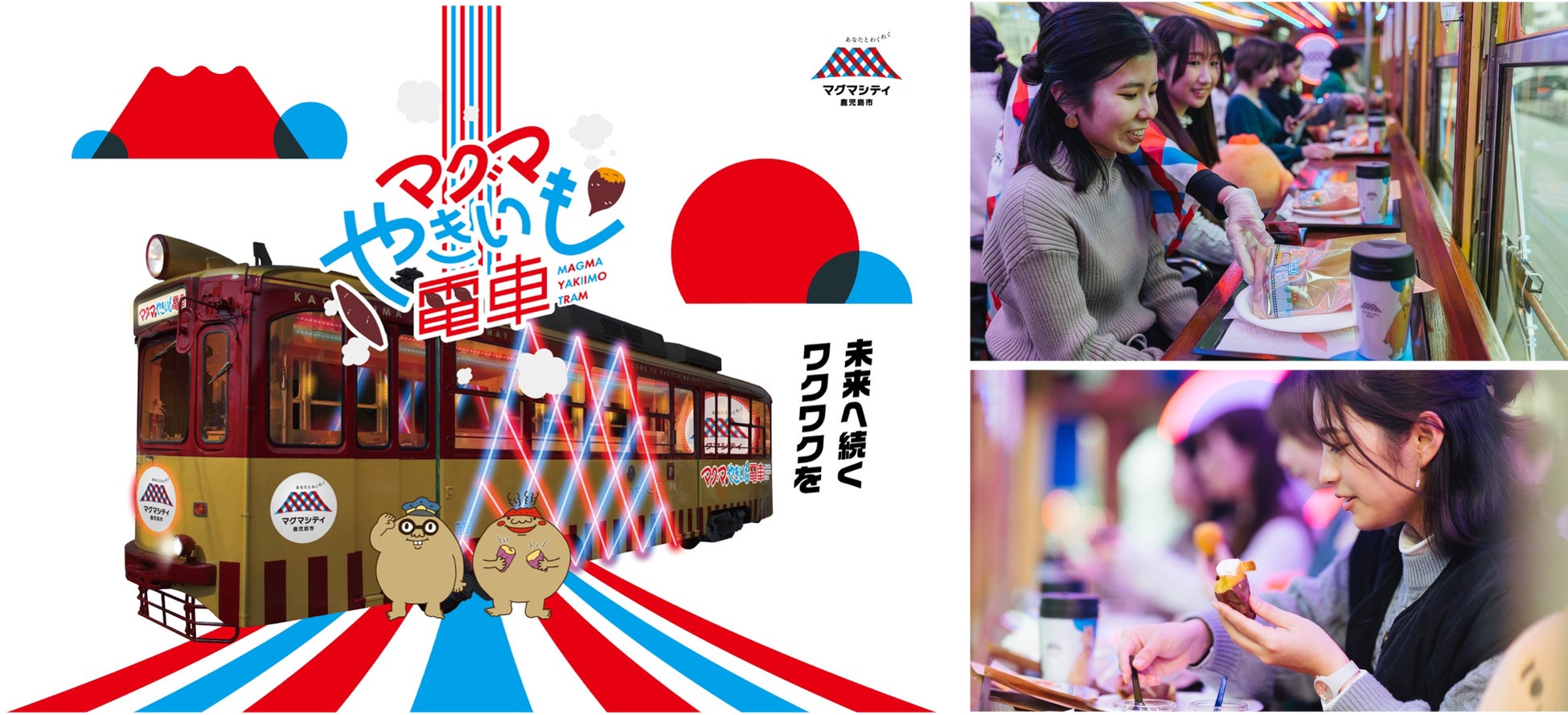 120万枚の桜の花びらに埋もれる「SAKURA CHILL BAR by 佐賀」や、⾞内でいちご狩りを楽しむ「いちごさんバス」など、数多くの体験型イベントを⼿がけるクリエイター「アフロマンス」率いるクリエイティブカンパニー「Afro&Co.(東京都渋谷区、代表:山崎 剛弘)」は、⿅児島市(市⻑:下鶴隆央)とコラボレーションし、ほくほくの焼き芋を⾷べながら⿅児島市内を巡る体験型路⾯電⾞「マグマやきいも電⾞」を2024年2月に開催します。