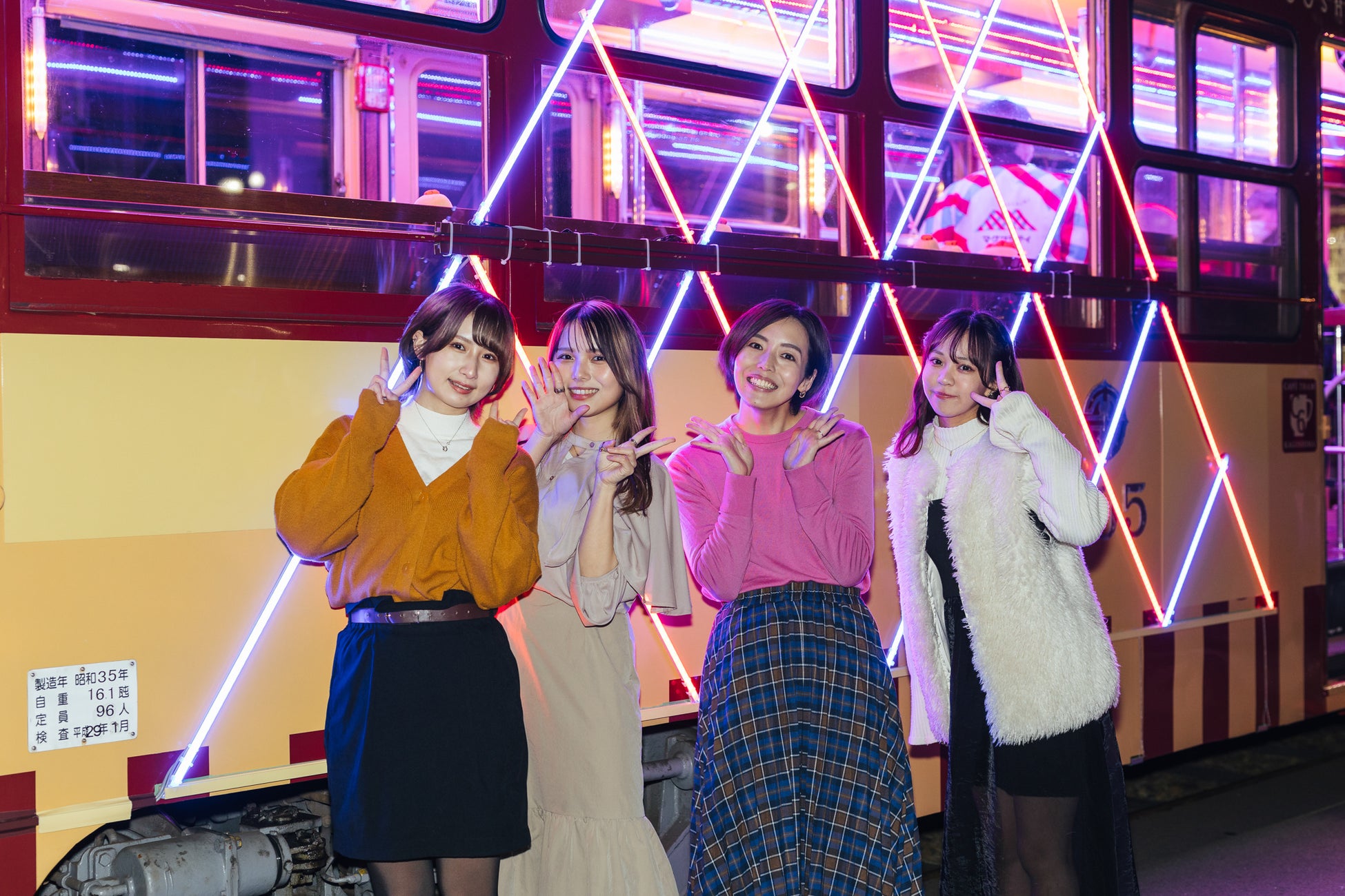 ▲LED装飾された電車はさながら移動するイルミネーション。思わず写真を撮りたくなります。