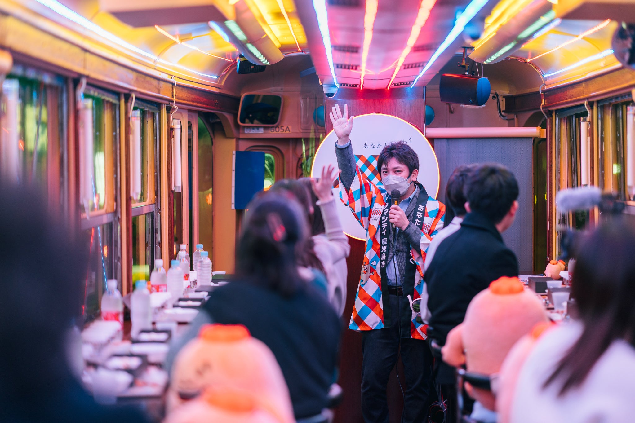 120万枚の桜の花びらに埋もれる「SAKURA CHILL BAR by 佐賀」や、⾞内でいちご狩りを楽しむ「いちごさんバス」など、数多くの体験型イベントを⼿がけるクリエイター「アフロマンス」率いるクリエイティブカンパニー「Afro&Co.(東京都渋谷区、代表:山崎 剛弘)」は、⿅児島市(市⻑:下鶴隆央)とコラボレーションし、ほくほくの焼き芋を⾷べながら⿅児島市内を巡る体験型路⾯電⾞「マグマやきいも電⾞」を2024年2月に開催します。