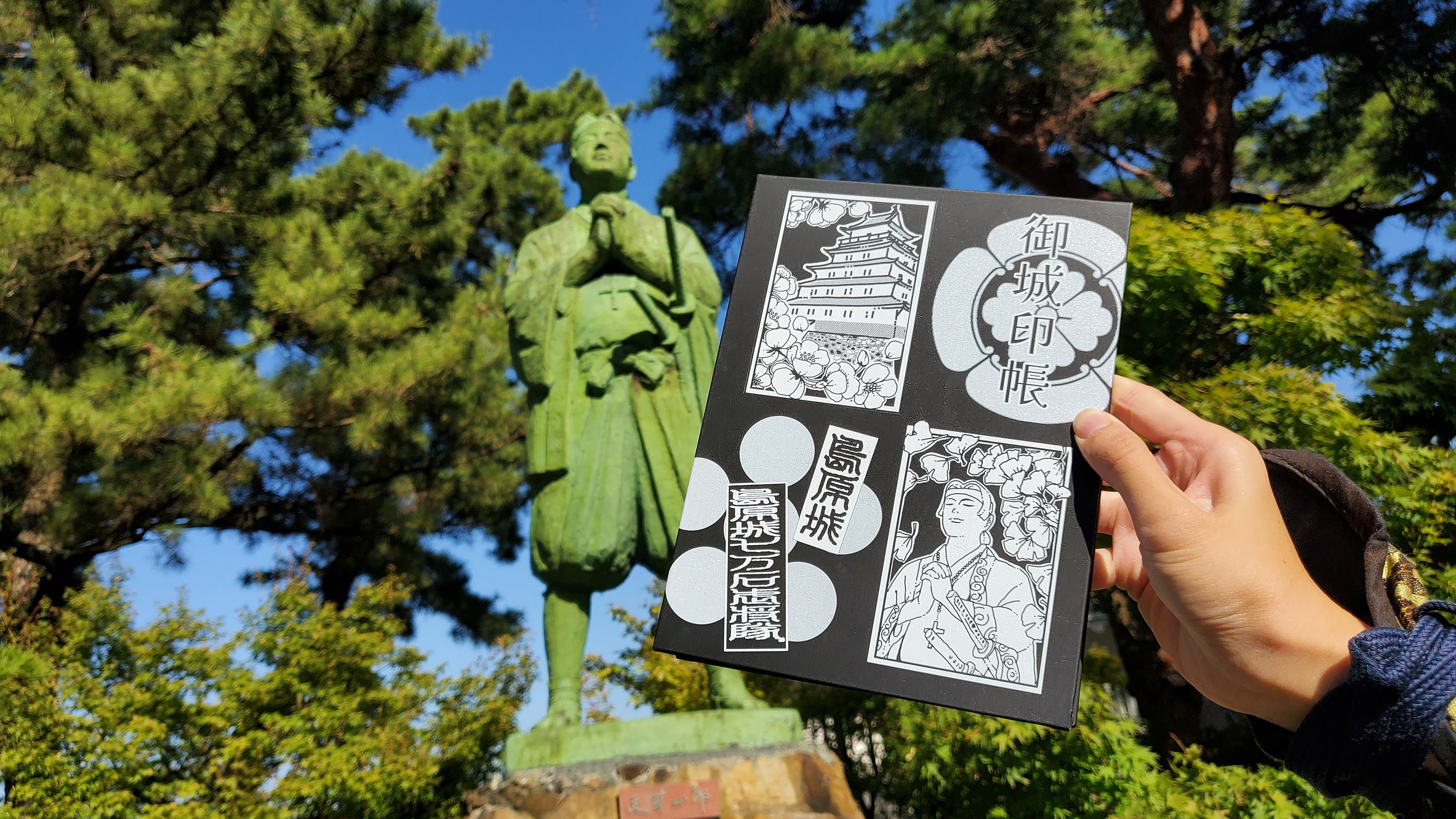 実際に御城印帳に描かれた天守や天草四郎像と写真を撮ってみるのはいかがでしょうか。