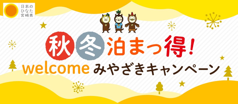 宮崎県では、物価高騰等による影響を軽減し、県内観光消費拡大と地域の活性化を図るため、令和5年10月26日から全国の旅行者を対象とした本県独自の観光需要喚起策「秋冬泊まっ得(とまっとく)!welcomeみやざきキャンペーン」を実施します。