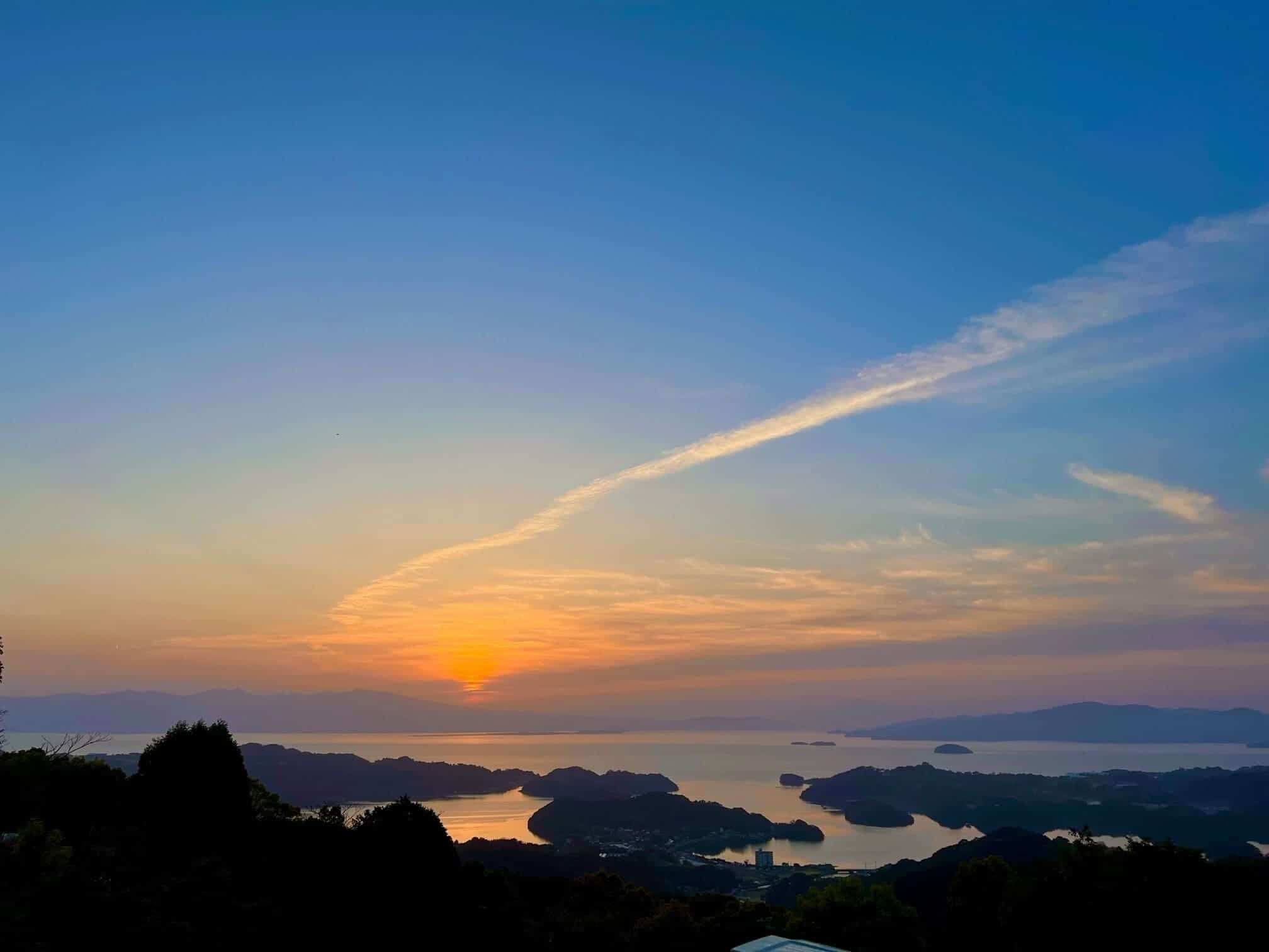 眠い目をこすりながら、Flat Glamping Nagasak自慢の大村湾に望む朝日と