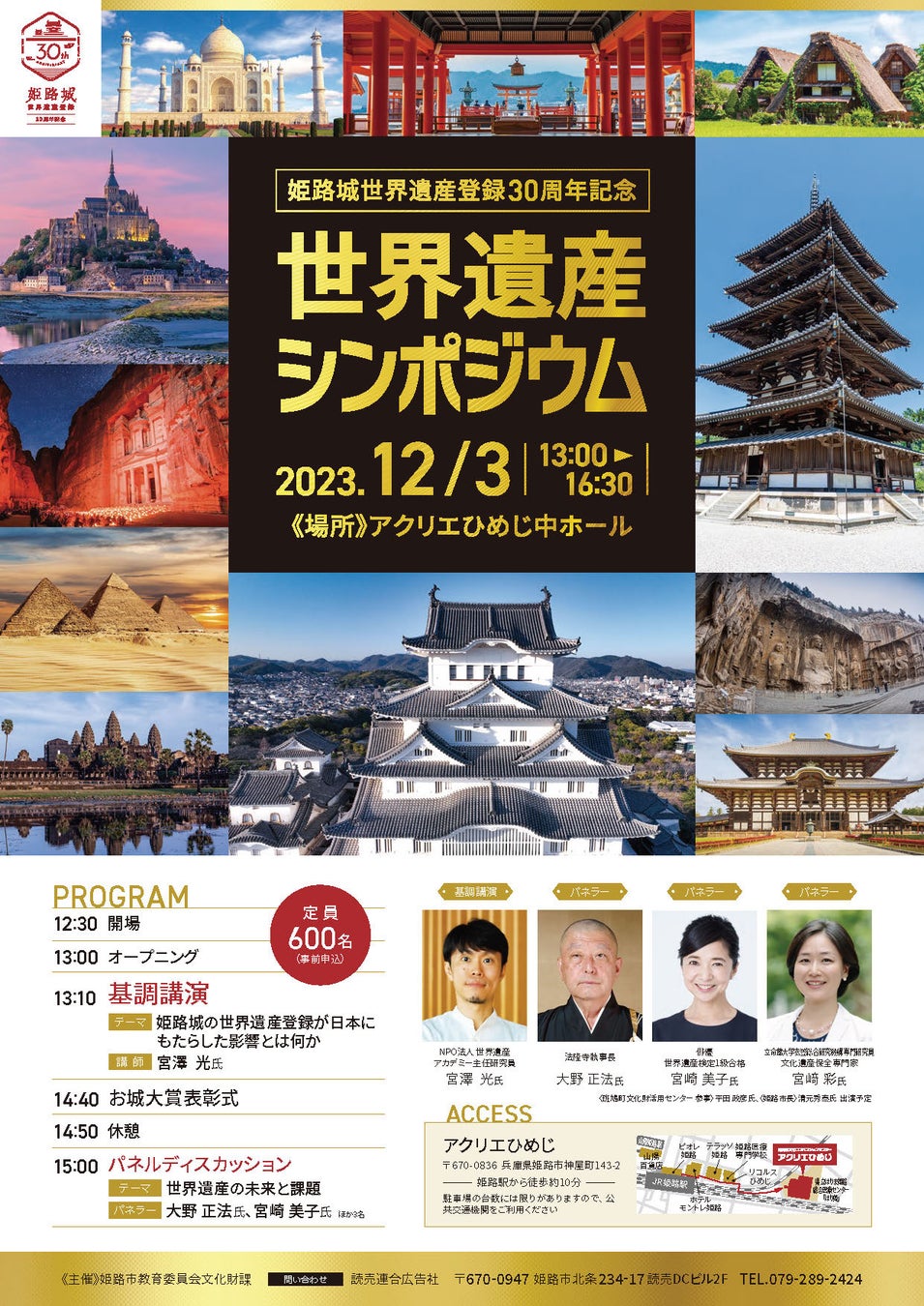 姫路城が日本で最初に世界遺産に登録されて30周年を記念し、シンポジウムを開催します!