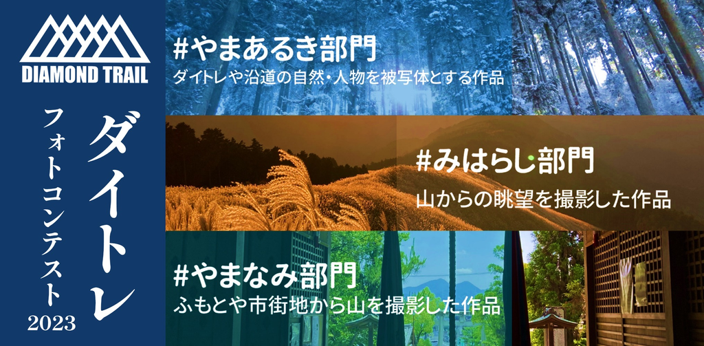 ダイヤモンドトレール(通称ダイトレ)は金剛・葛城山系を縦走する長距離自然歩道で、子どもからご年配の方まで多くの登山者に親しまれています。本コンテストでは、3部門での作品を募集します。