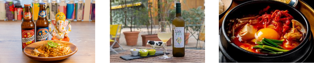 中央:La Petite Fromagerie~小さなチーズの店~「もものスパークリングワイン」(500円)川崎で人気のチーズ屋さんが選んだ、チーズと相性抜群のもものスパークリングワインをお楽しみください!