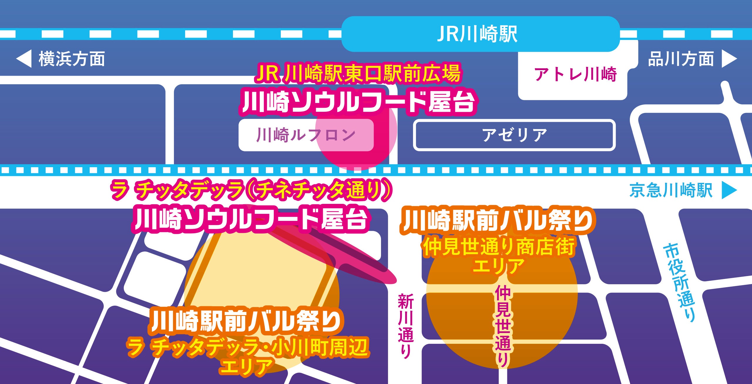 ■場所:JR川崎駅東口駅前広場、ラ チッタデッラ、チネチッタ通り商店街、仲見世通り商店街 等