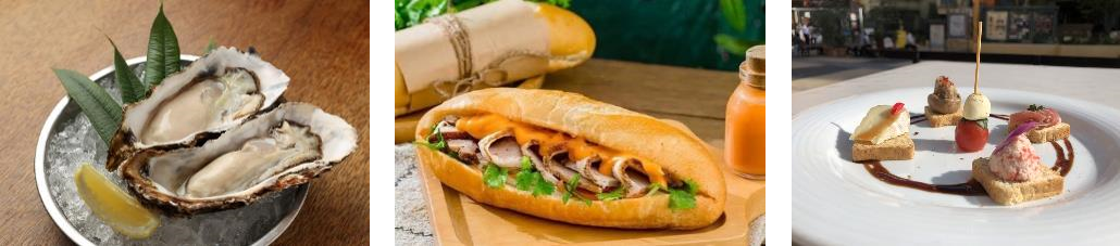 左:肉と牡蠣 市場 日替わりおすすめ生牡蠣2ピース+生ビール、スパークリングワインなどから1杯 ほか