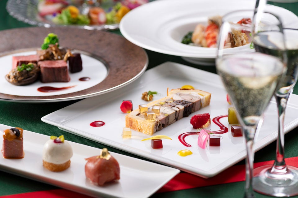 レストラン「ピクニカ」では、ランチ・ディナーで「河内鴨」「なにわ黒牛」「よろしい茸」の大阪産(もん)食材を使用したクリスマスコースを提供いたします。12月22日(金)・23日(土)・24日(日)の3日間限定クリスマスディナーでは、デザートにフランボワーズ・ピスタチオのクリスマスカラーで彩られたメインプレートをご提供後、シュトーレン、マカロンなどのプティフールをワゴンサービスいたします。コース料理に合わせたドリンクは、大阪で大正元年よりワイン醸造を続ける「カタシモワイナリー」から3種(泡・白・赤)のワインや、ノンアルコールスパークリングやクリスマスカラーのモクテルなど数種の中からお好みのものを3杯お選びいただけます。