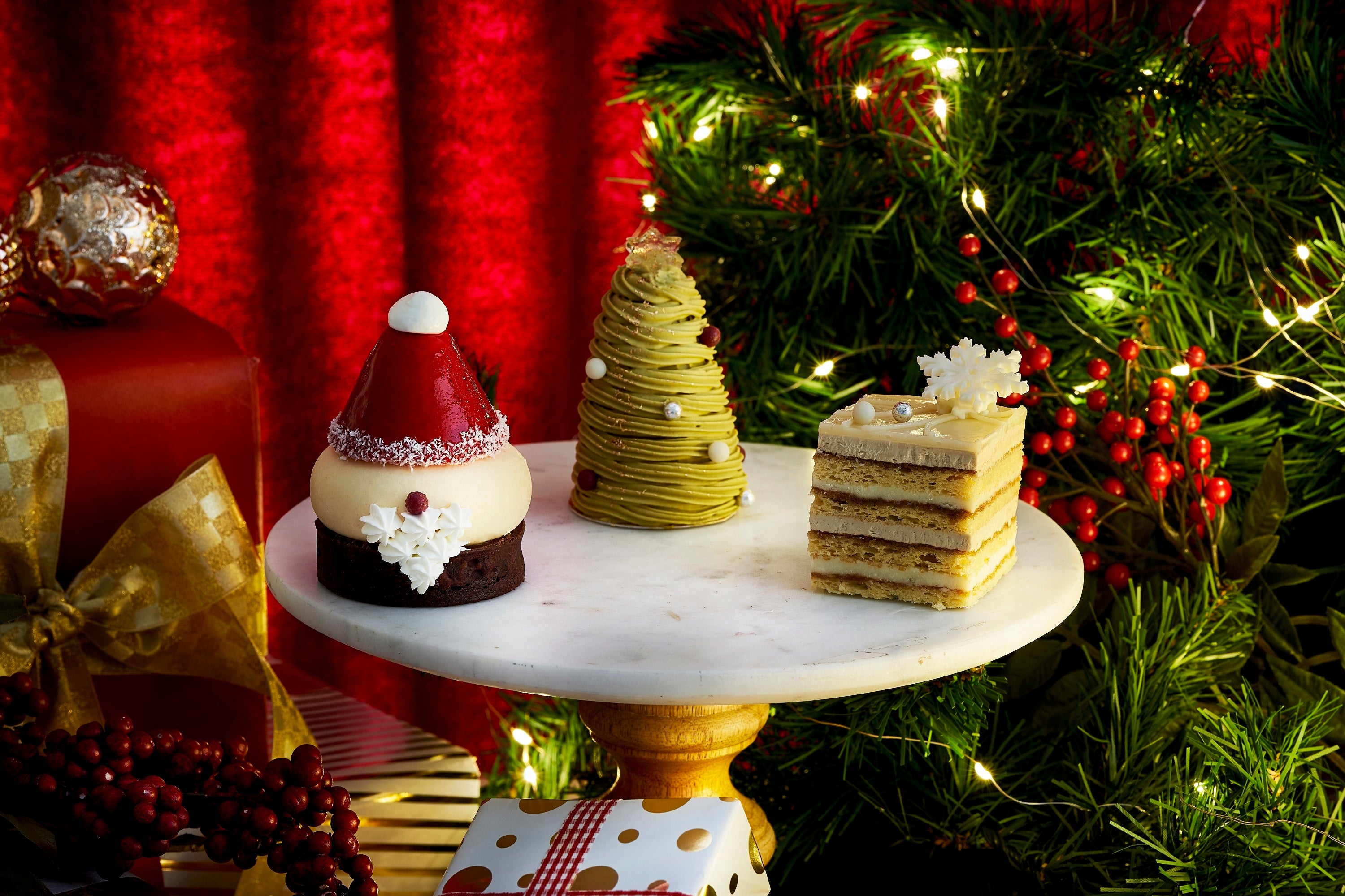 ホリデーシーズンを迎え⼀気にクリスマスムードが⾼まる12月には、ホテル内にも例年通りクリスマスツリーをはじめとするデコレーションが登場します。ツリーに飾るオーナメントやリース、トナカイの形などの可愛いスイーツを集めた、プレゼントボックスのような心躍るアフタヌーンティーと、サンタクロースやツリー型のカットケーキをご⽤意します。クリスマスムードたっぷりのスイーツとともに、⼤切なひととホリデーシーズンに思い出深いひとときをお過ごしください。