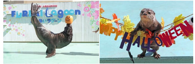 水族館「ふれあいラグーン」では、コツメカワウソ・オタリア(アシカの仲間)などが生態を活かしてさまざまなパフォーマンスを披露する「アニマルパフォーマンス」がハロウィン仕様となる他、ハロウィンの装飾で彩られた道をぺたぺたパレードするペンギンなど、可愛らしい生きものたちの姿を間近でご堪能いただけます。