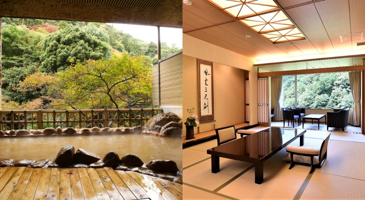 しっとりと落ち着いた雰囲気の日本庭園や、古き良き日本の伝統を取り入れた設えの数々が、特別な旅のひとときを演出します。