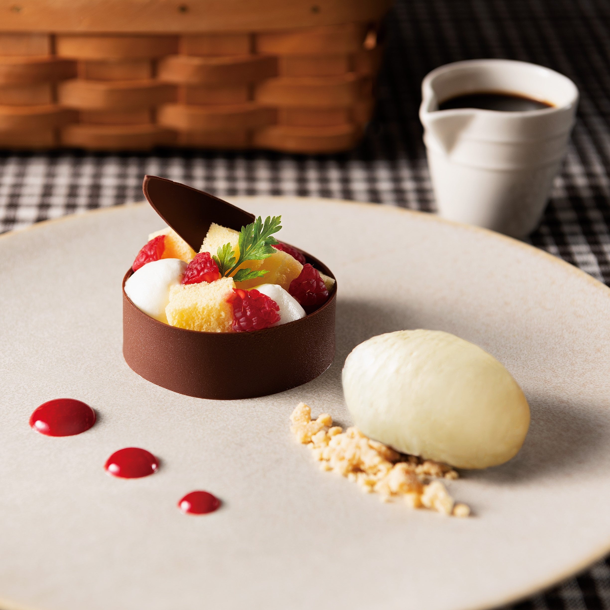 “ご自身で仕上げるティラミス”をテーマとした、スポンジ、ホイップクリーム、ベリーを組み合わせたデザートに、上からビターカフェソースを注ぎます。コーヒーの香りとともにハーゲンダッツのバニラアイスクリームをお楽しみいただけます。