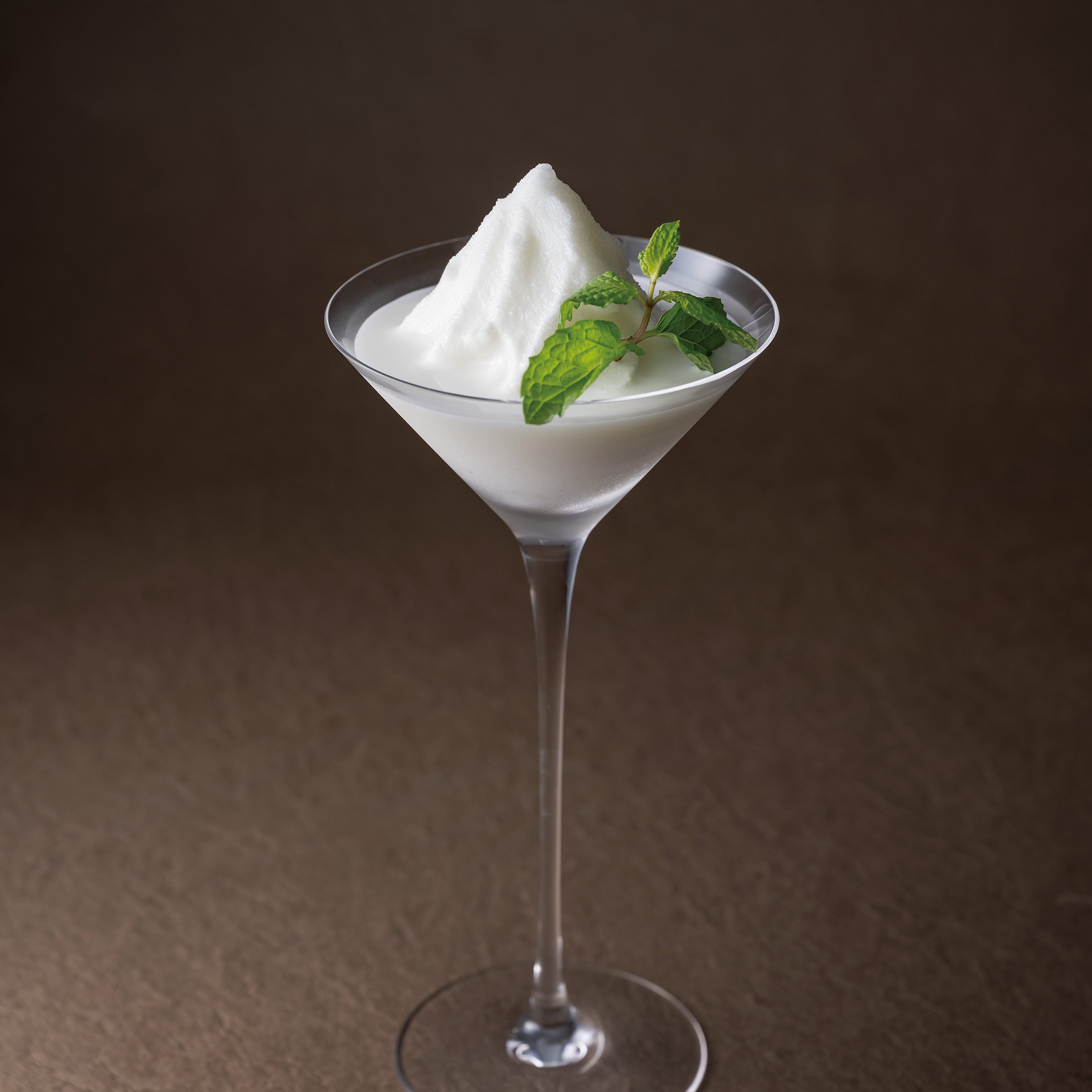 ホワイトラムとライム、ハーゲンダッツのバニラアイスクリームを合わせ、モヒート風味のフローズンに仕上げました。ベルガモットの香りを纏(まと)わせた、デザートカクテルです。