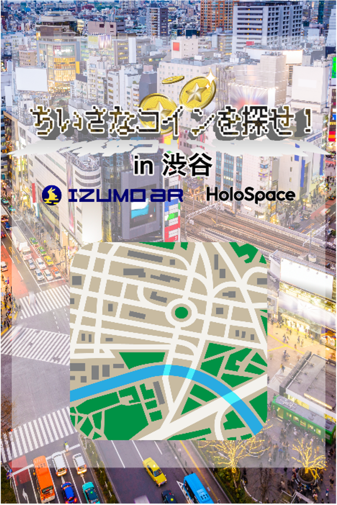 IZUMOarアプリをダウンロードし、渋谷の街中に散りばめられた30枚の小さなコインを探してください。見つけたコインの数に応じて、抽選で記念賞品がプレゼントされます。