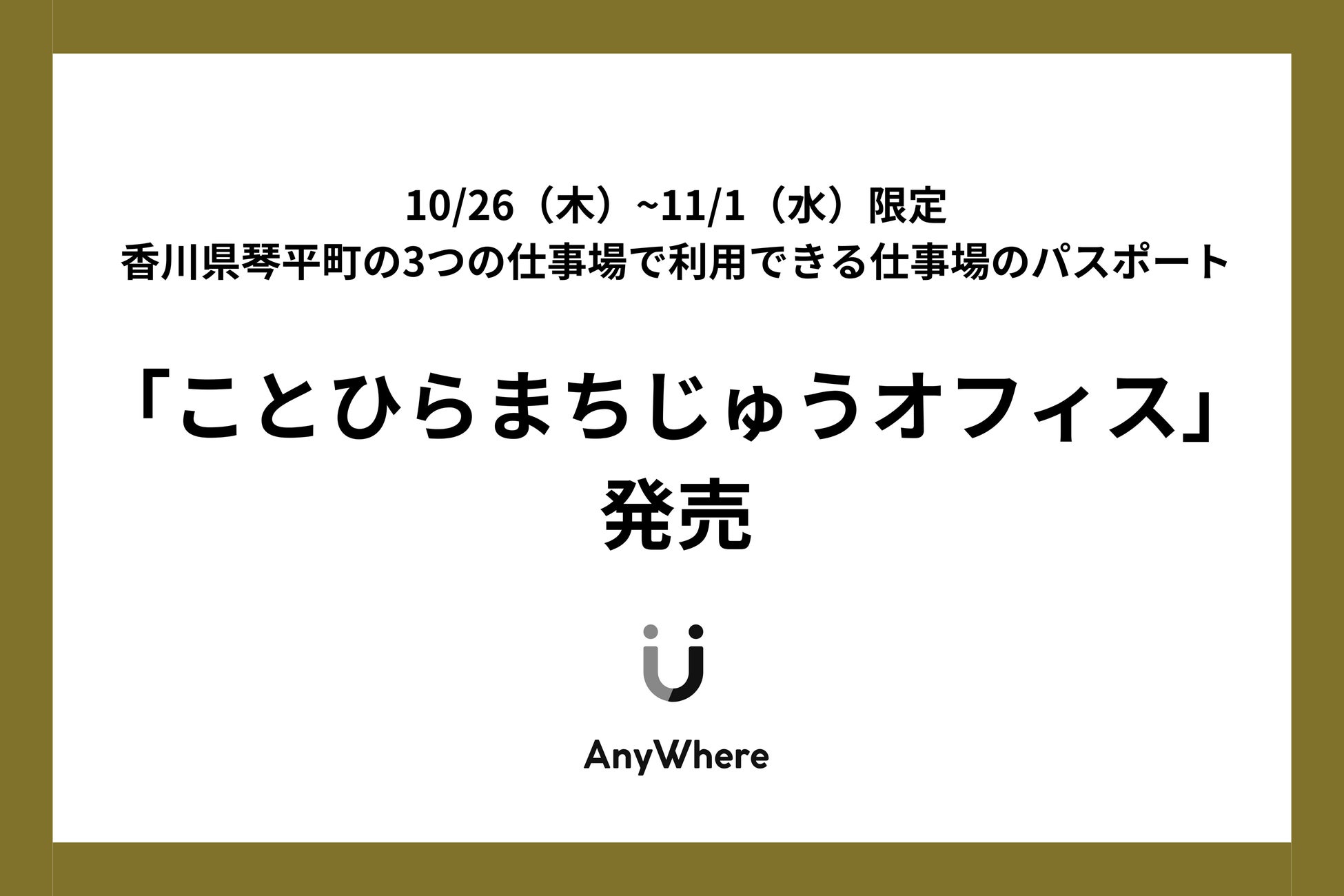 今回、私たちは10/26(木)~11/1(水)「暮らすように旅する」をテーマに琴平に滞在しながら仕事も遊びも楽しんでいただく「琴平シェアウィーク」限定で「ことひらまちじゅうオフィス」という仕事場のパスポートを販売することとなりました。