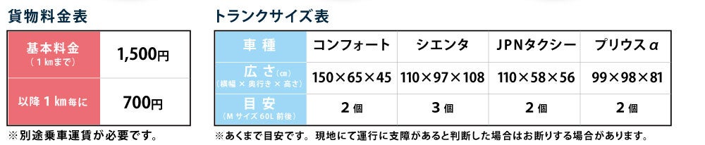 ※旅客輸送後の貨物輸送サービスのため、荷物のみの輸送は行いません