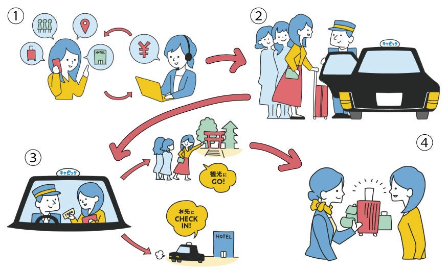 そこでキャビックでは、タクシーにご乗車いただくお客様を目的地までお連れした後、そのまま手荷物を宿泊先のホテルまで有料で輸送する新ワンストップサービス「先に運んどくわ お荷物チェックインTAXI」を開始しました。タクシーが荷物(貨物)を運ぶ試みは国内初となります。