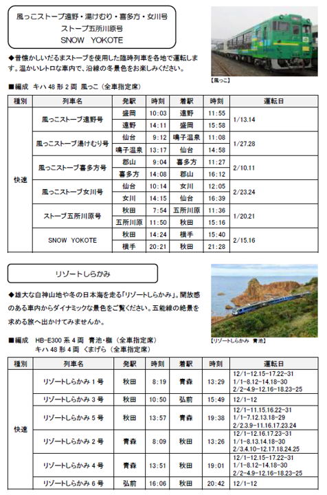 ※最新の臨時列車の情報は、「臨時列車のお知らせページ」で随時発表します。