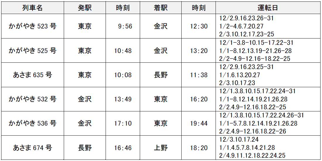 ◆長野・金沢方面へ、「かがやき」・「はくたか」878本、「あさま」208本を運転します。