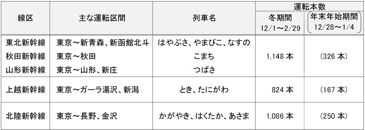 ◆東北方面へ、「はやぶさ」927本、「こまち」322本、「つばさ」225本を運転します。