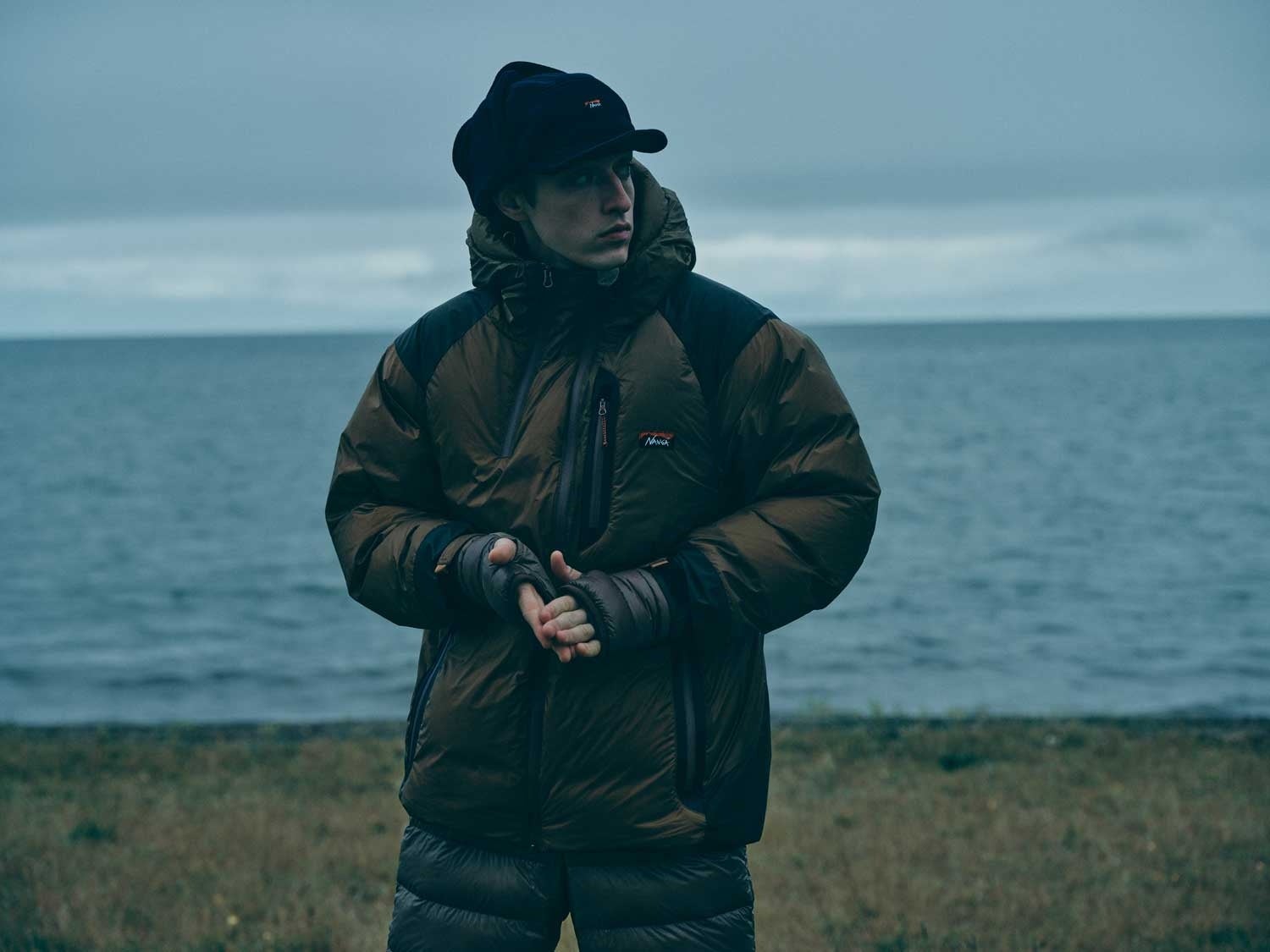 オーロラライトダウンジャケットの新型“ミカミ”は、レベル7の構造理論を投入したメイドインジャパンモデル。寝袋に用いられるボックスキルト構造を部分的に採用し、保温性を向 上させました。首元のベンチレーションなど、機能的で個性的なデザインは健在です。