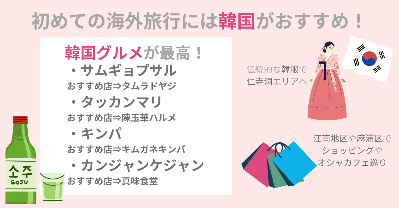 そんな方にぴったりの海外旅行先は「韓国」です。