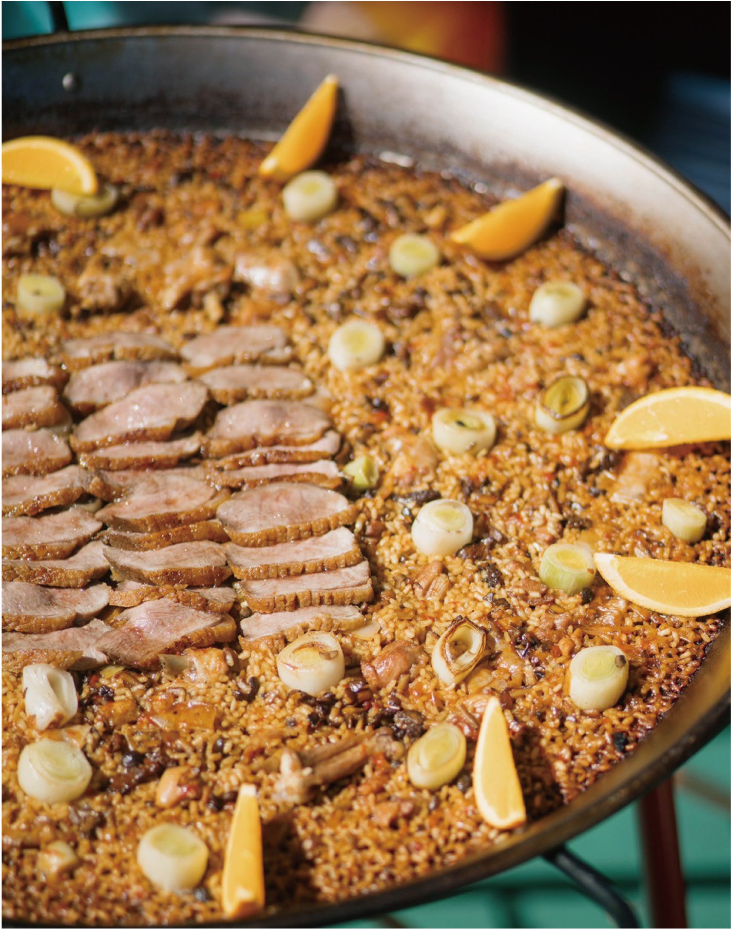 テーマは日本でもお馴染みの「鴨ネギ」。その組み合わせに工夫を加え、パエリアにしました。