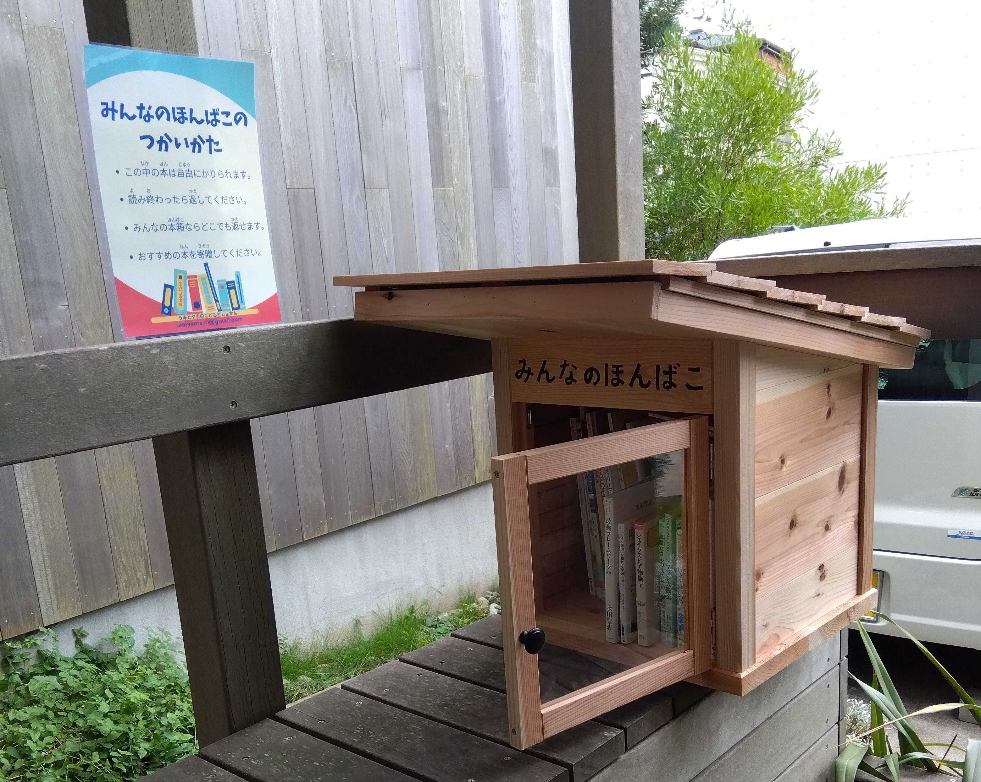 「うみとやまのこどもとしょかん」が企画した町中に「みんなのほんばこ」を設置するどこでも図書館プロジェクトへの参加を予定し、10月8日より設置致しました。