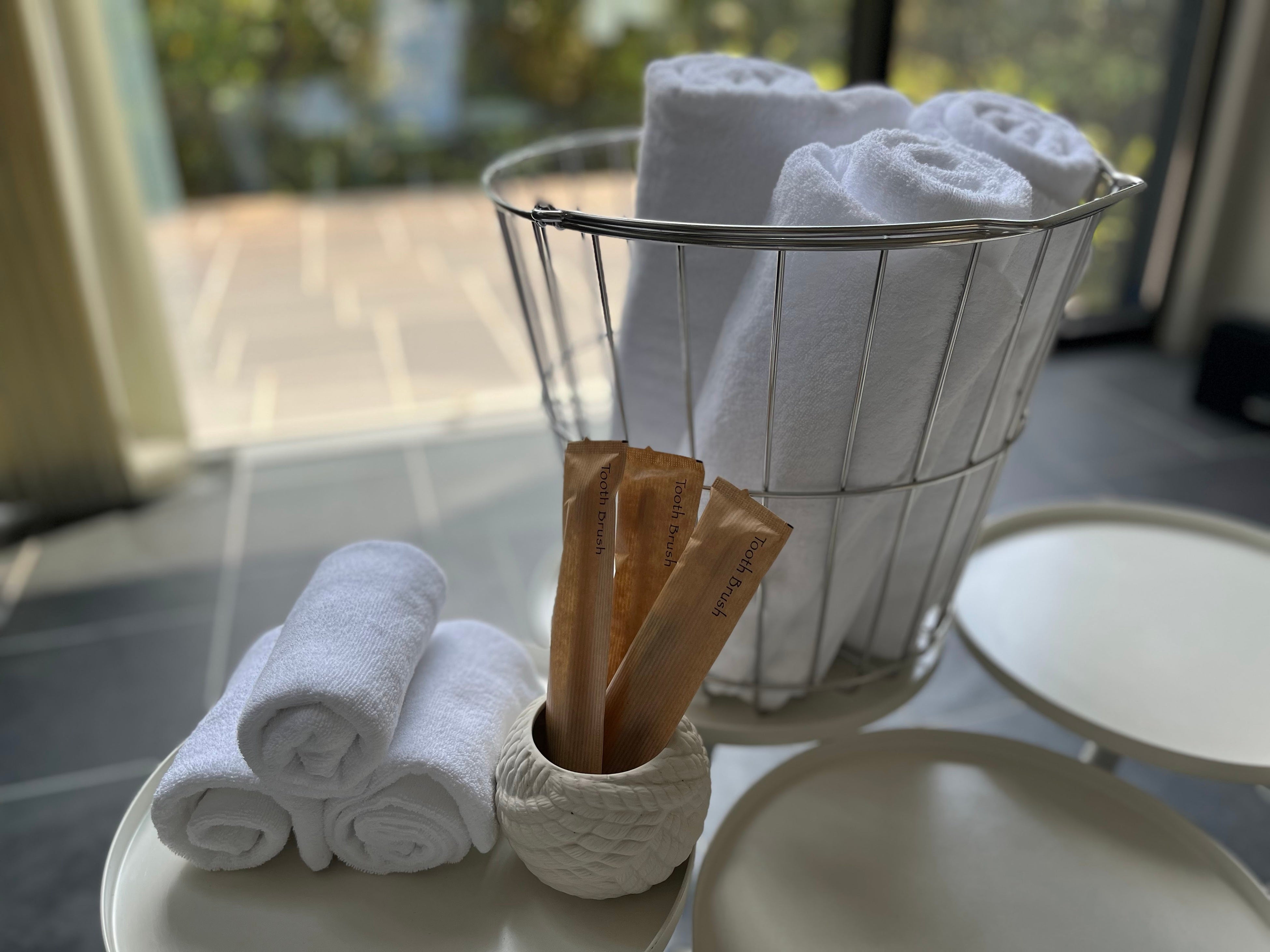 ・ゴミ焼却量やプラスチックゴミ排出量を極力減らすべく、過剰なアメニティのご用意を控えさせて頂いております。
