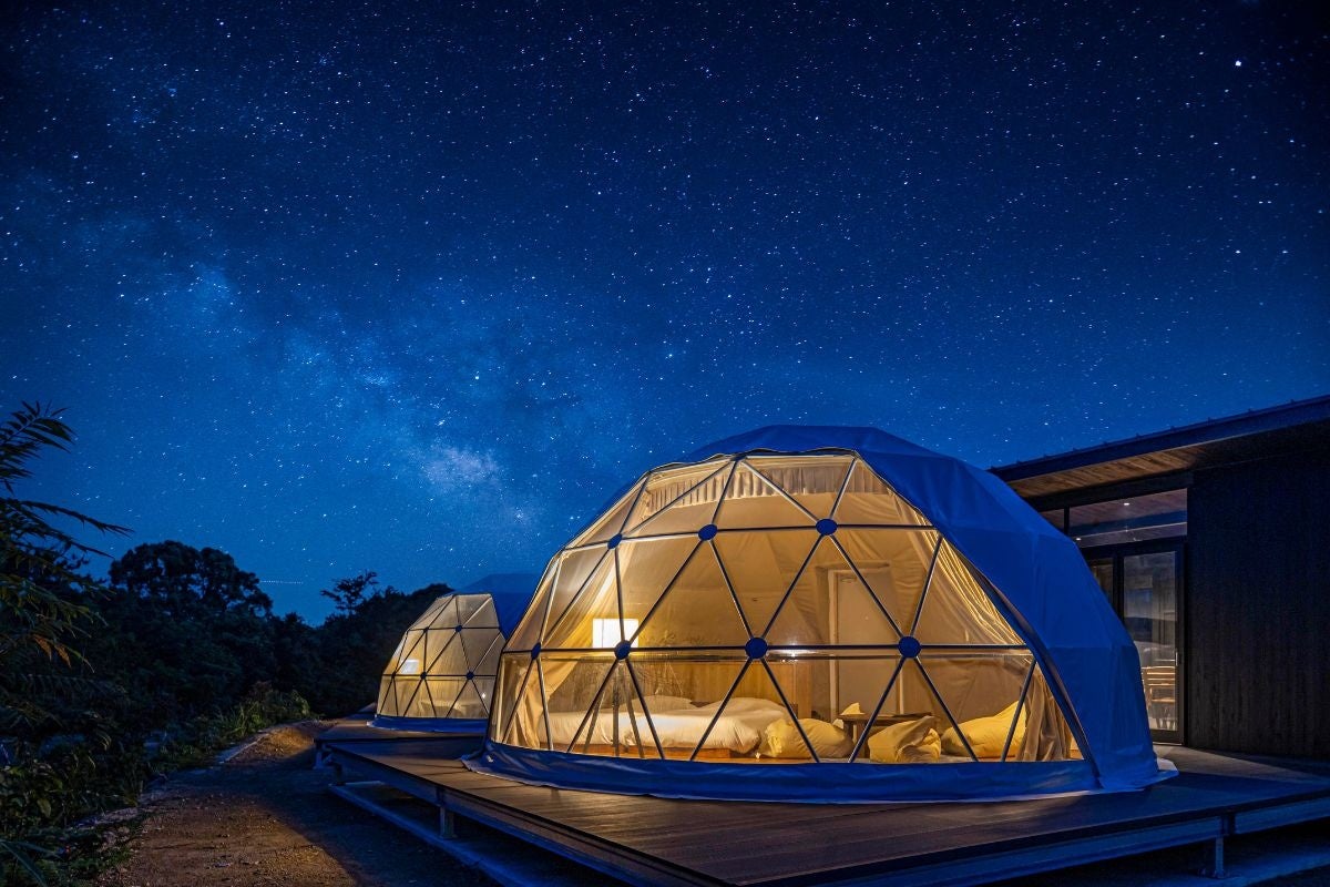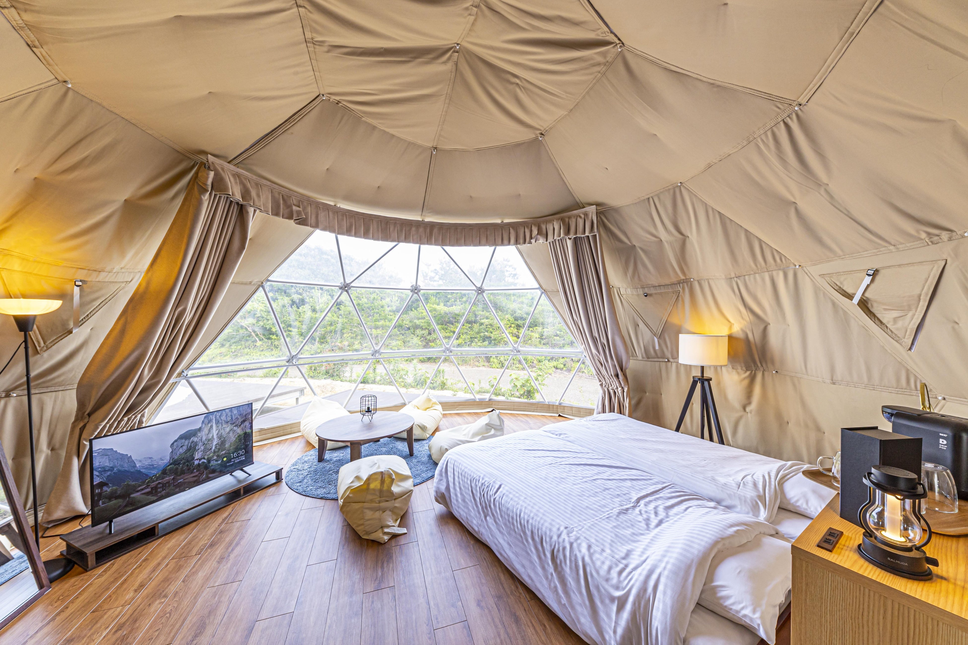 ・夜は、7組限定で冷暖房完備の広々としたドーム型テントに宿泊