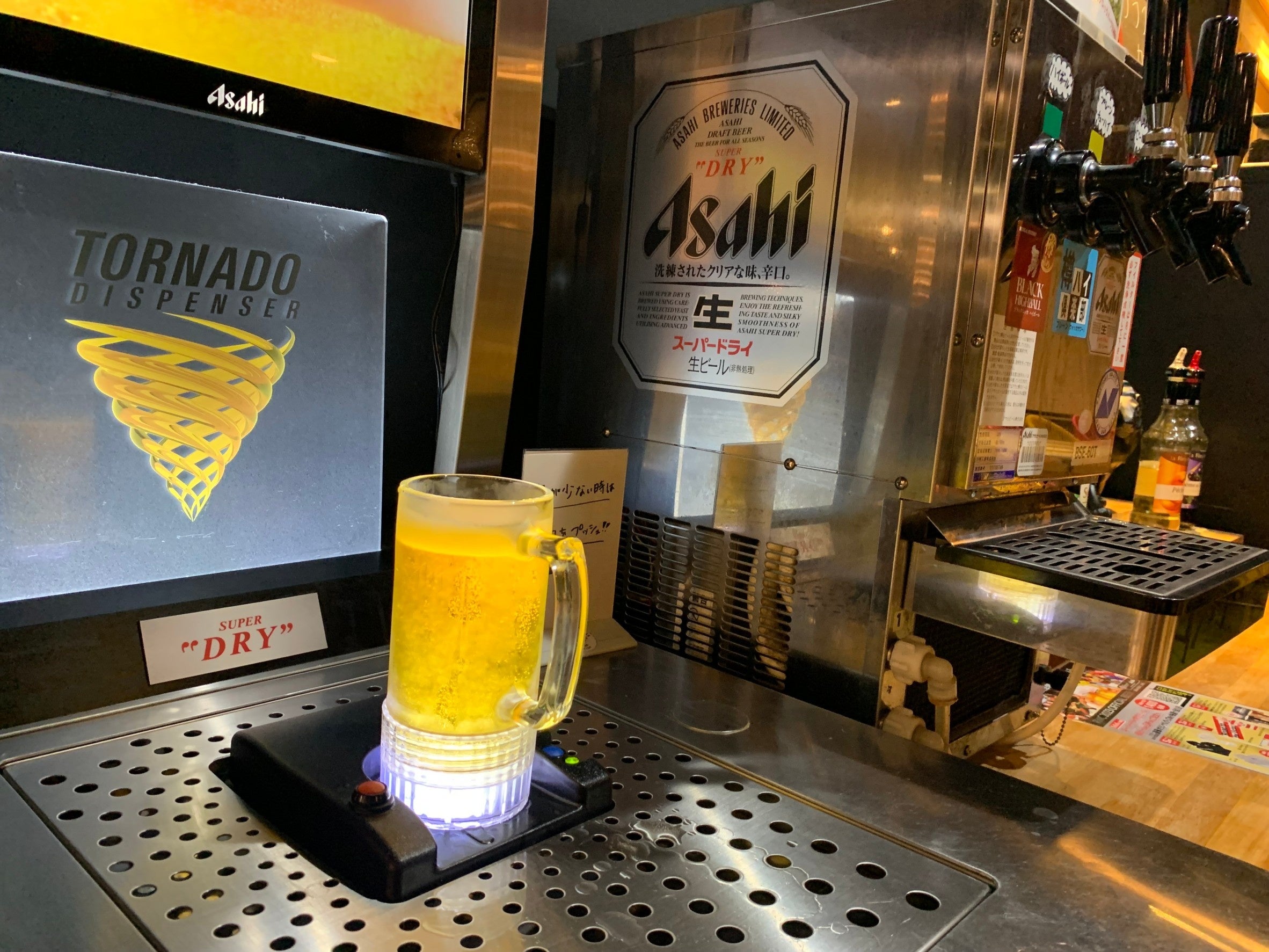 飲み放題は90分制(延長可)セルフ方式となっており、下からビールが湧いてくるトルネードサーバーやハイボールサーバー、その他30種類以上のドリンクをご利用いただけます。