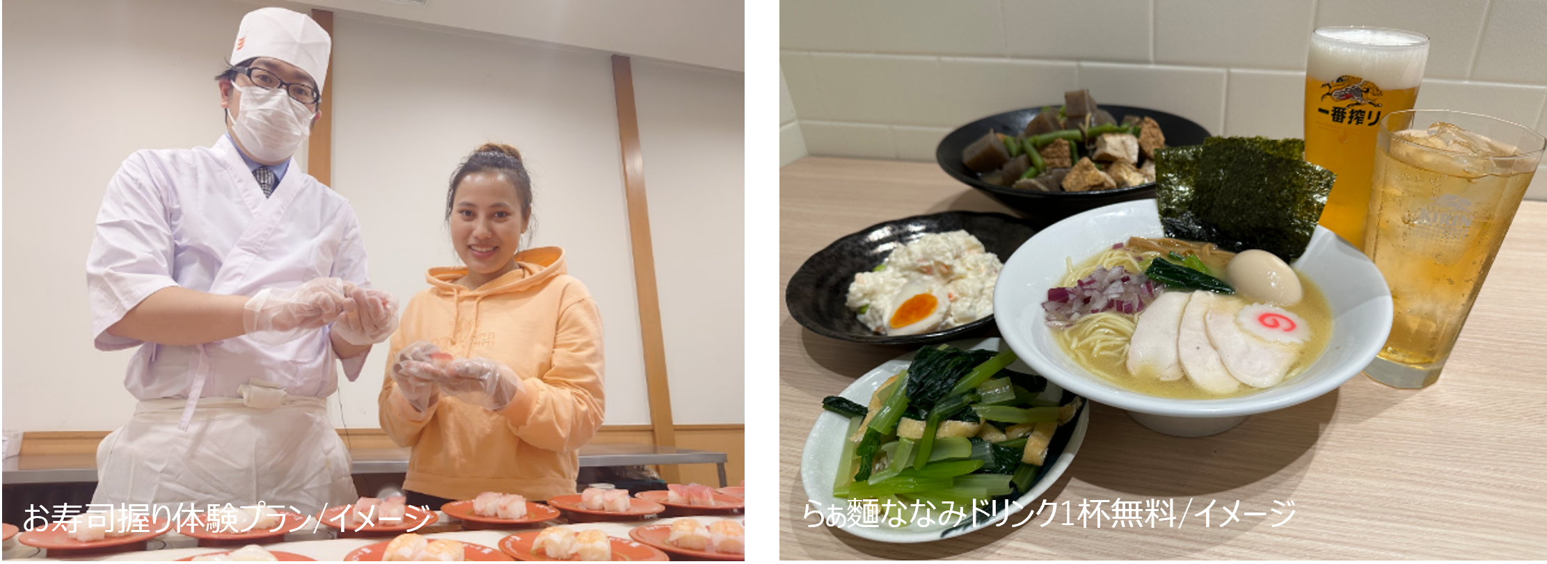H.I.S.ホテルホールディングス株式会社(本社:東京都港区)が運営するウォーターマークホテル京都は、カッパ・クリエイト株式会社(本社:神奈川県横浜市)とコラボレーションし、ホテルの客室にて寿司を握る体験ができる「お寿司握り体験プラン」を10月24日(火)より発売いたします。また、変なホテル東京 浜松町では、10月にホテル内に新規オープンしたレストランのらぁ麵ななみにて、10月24日(火)よりドリンク1杯を無料でサービスいたします。